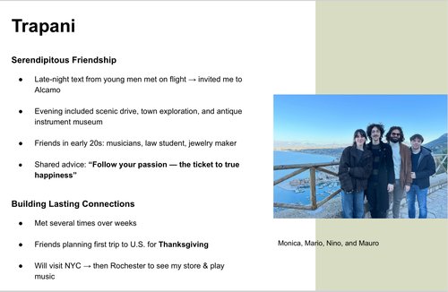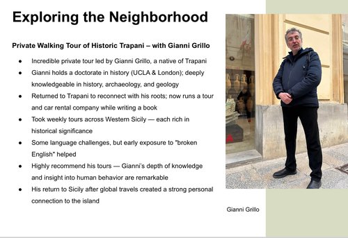 This was my adventure living alone as a "tough old bird" in the town of Trapani.