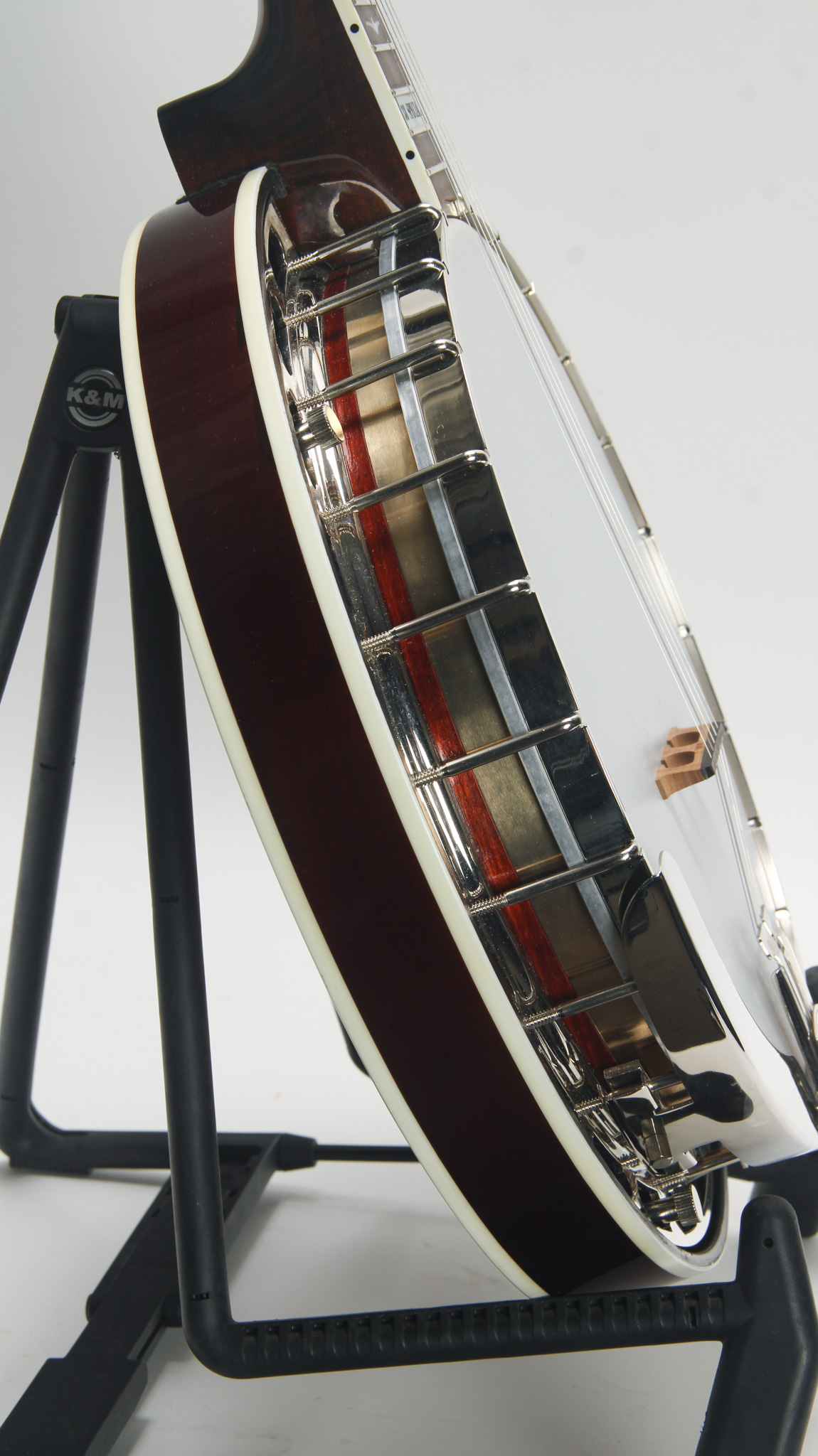Features a rich, dynamic, bluegrass tone from it’s 3/16" steel rim and tone ring...perfect for pickin’ in the parking lot at jams and festivals, the sound is loud and clear. The fully bound...
