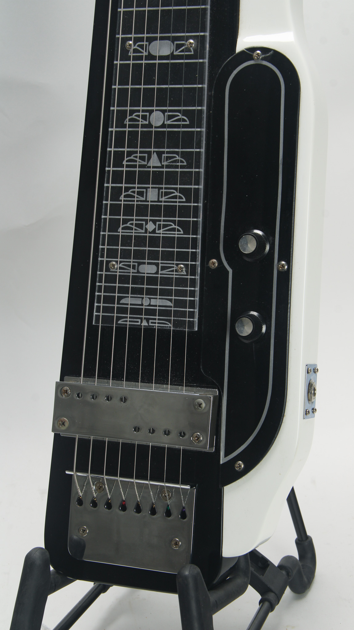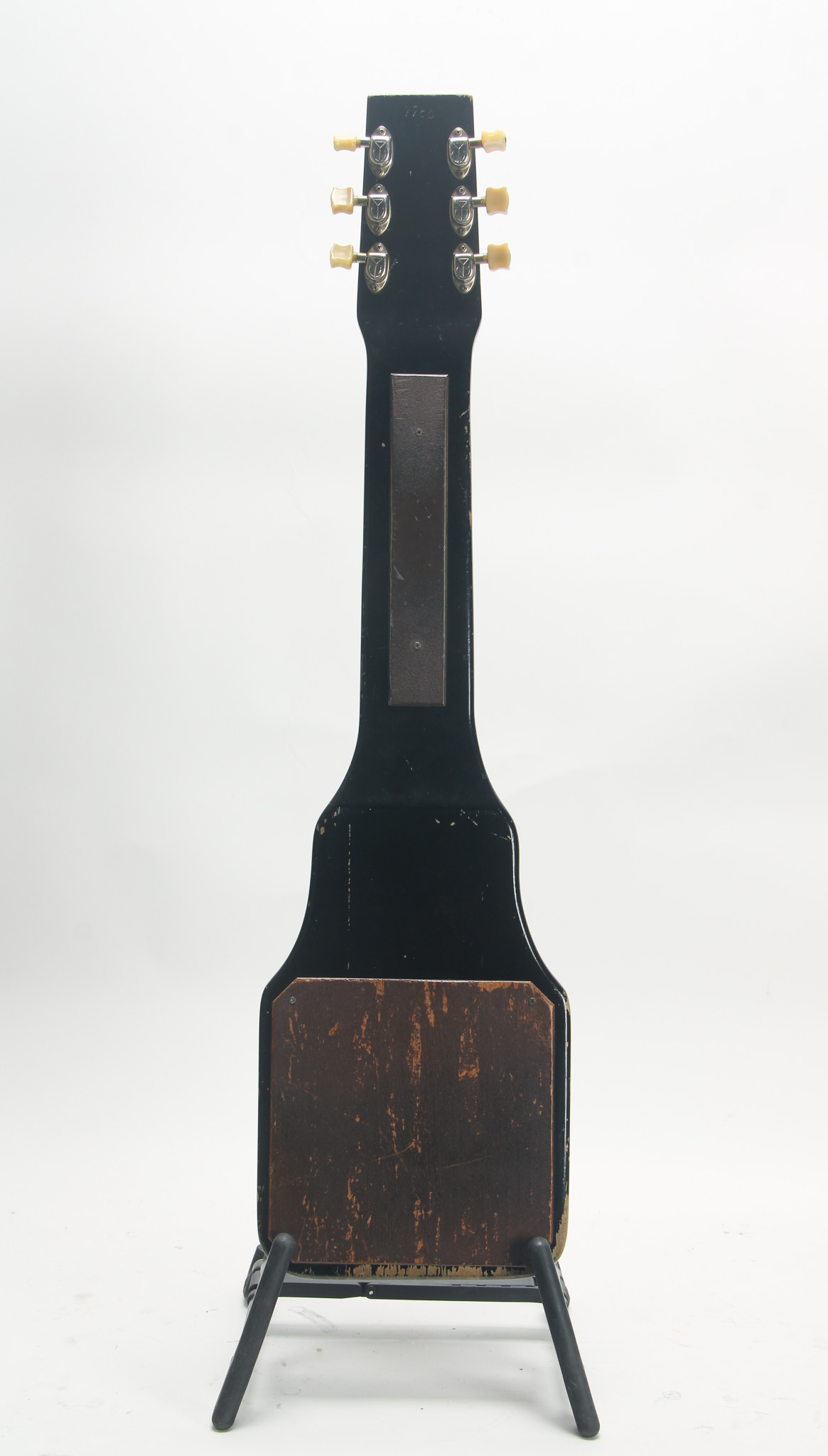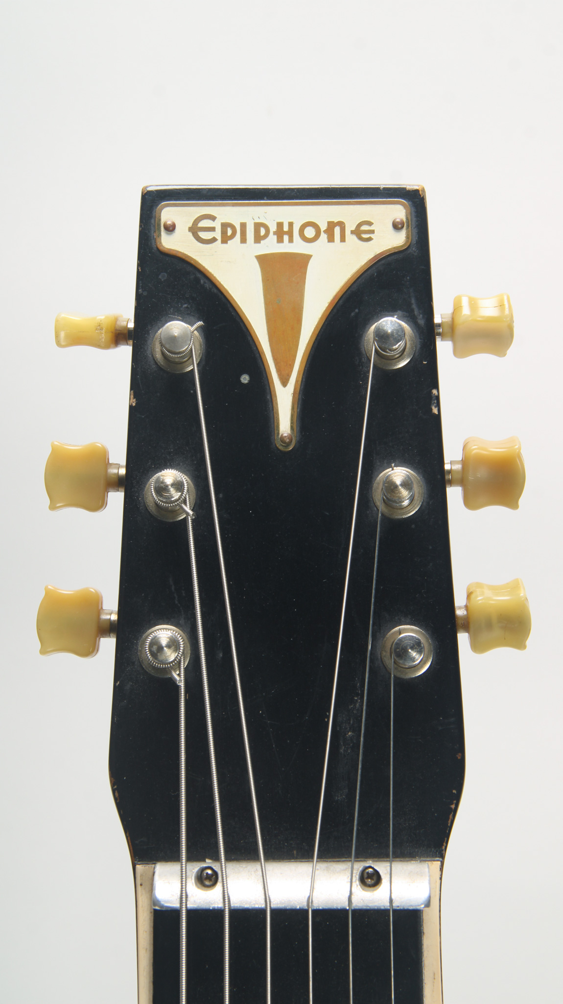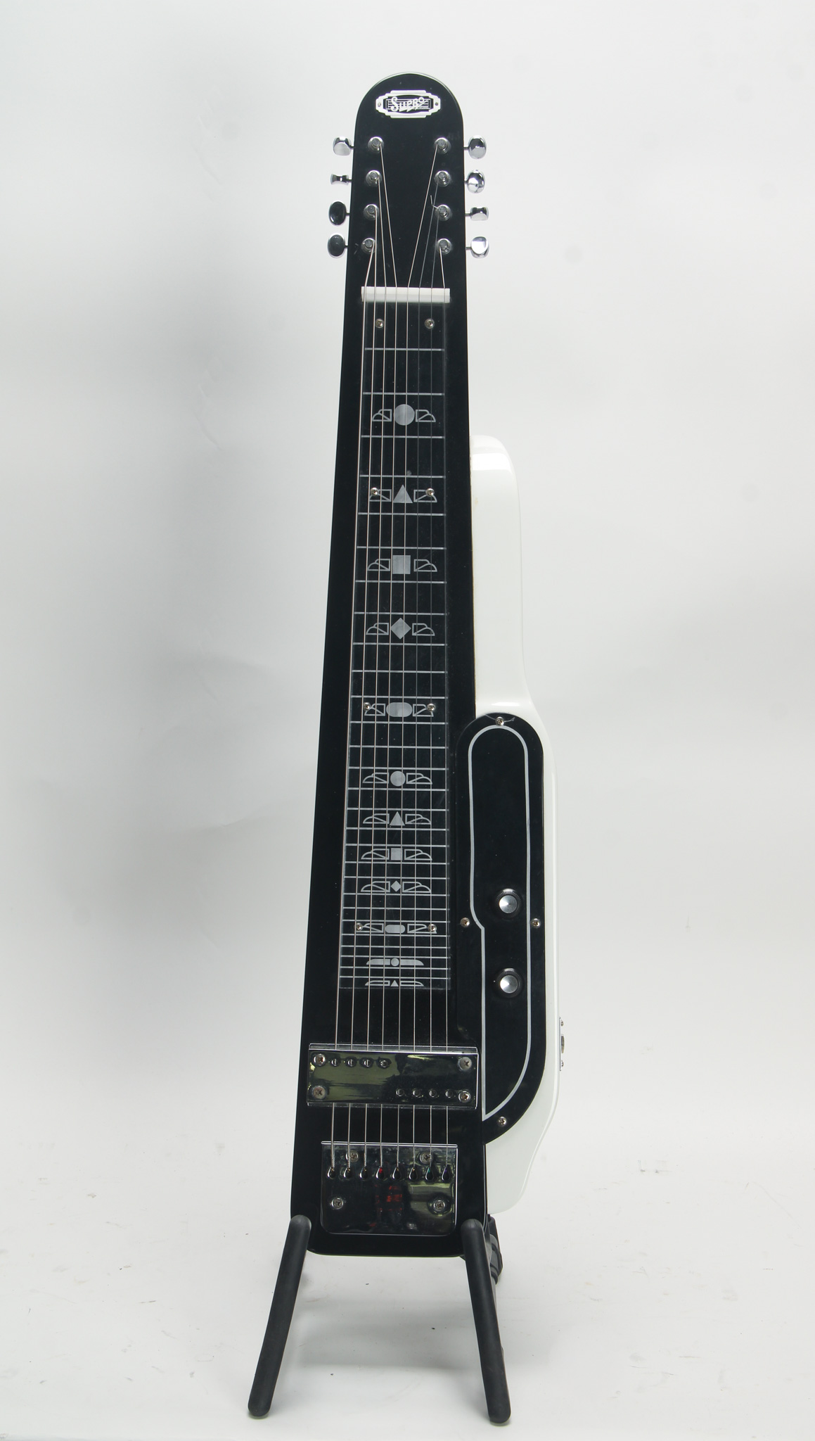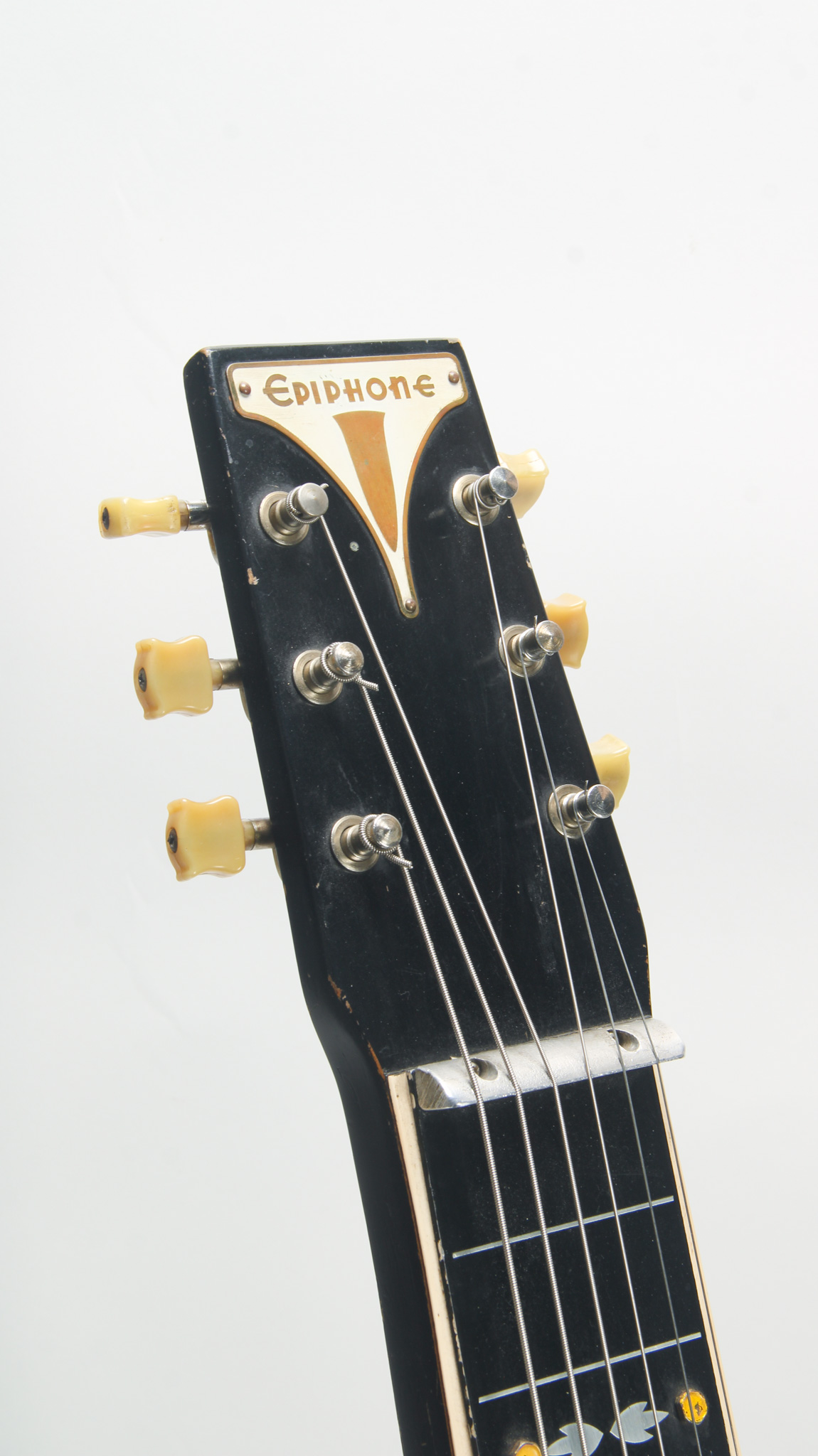 THIS Hawaiian lap steel features jet black finish on the back, with a white Pyralin Epiphone name-plate on the top. The staggered shape body, radio knobs, including "Master Voicer" give is a real,...