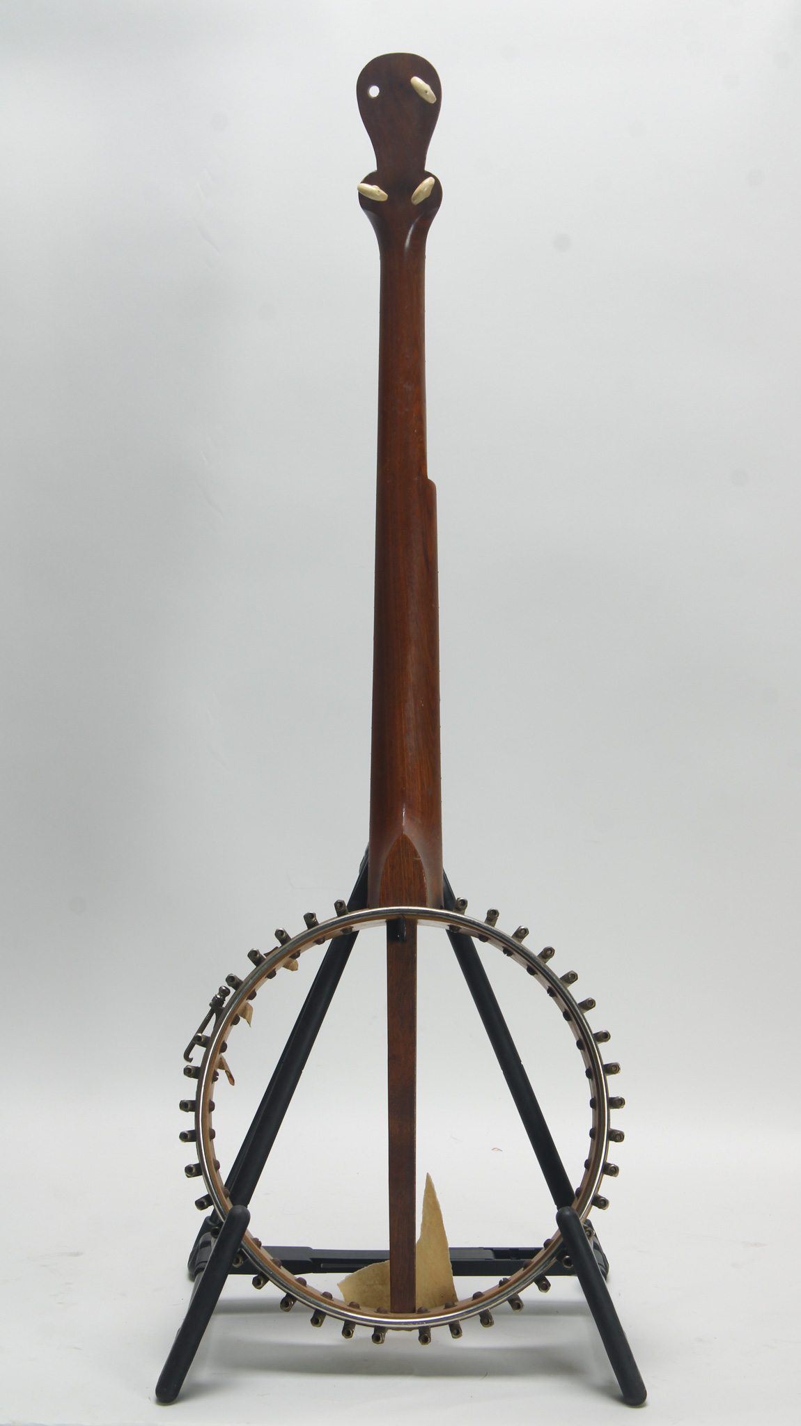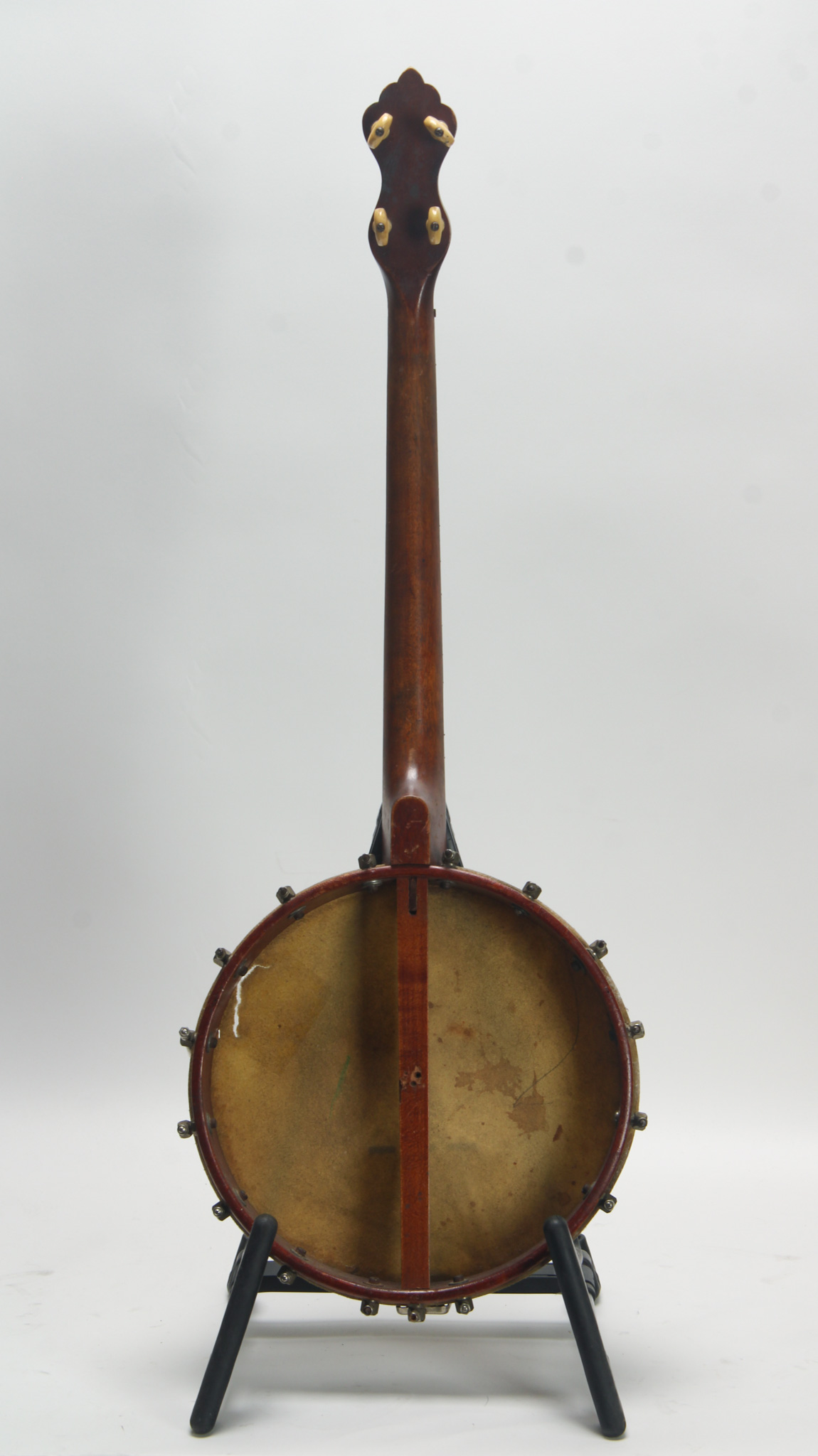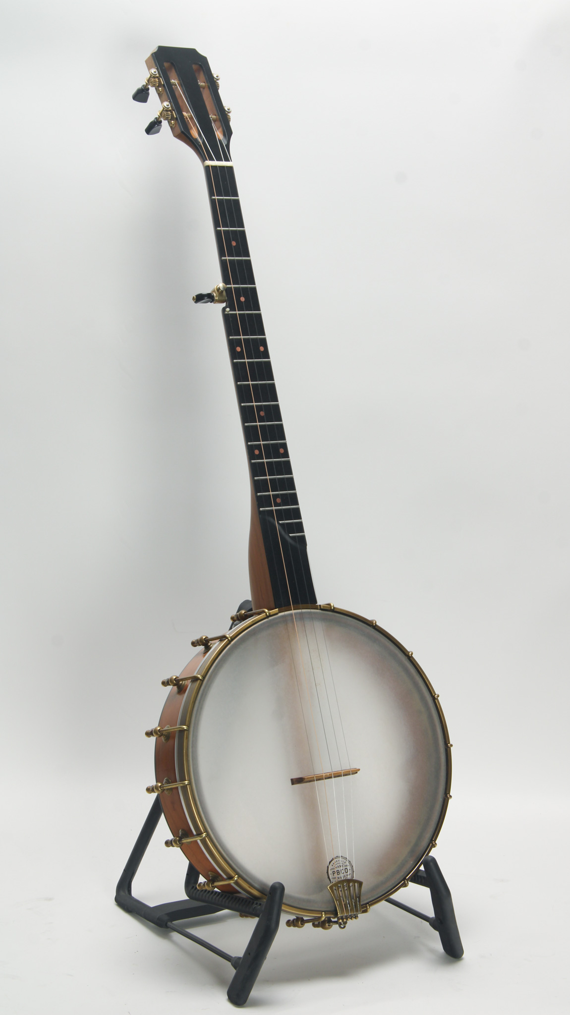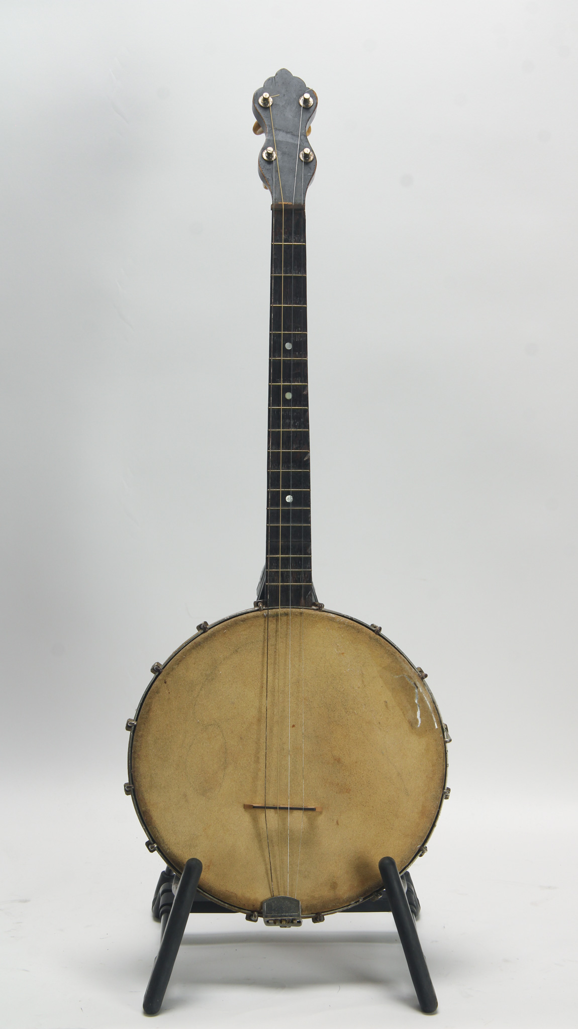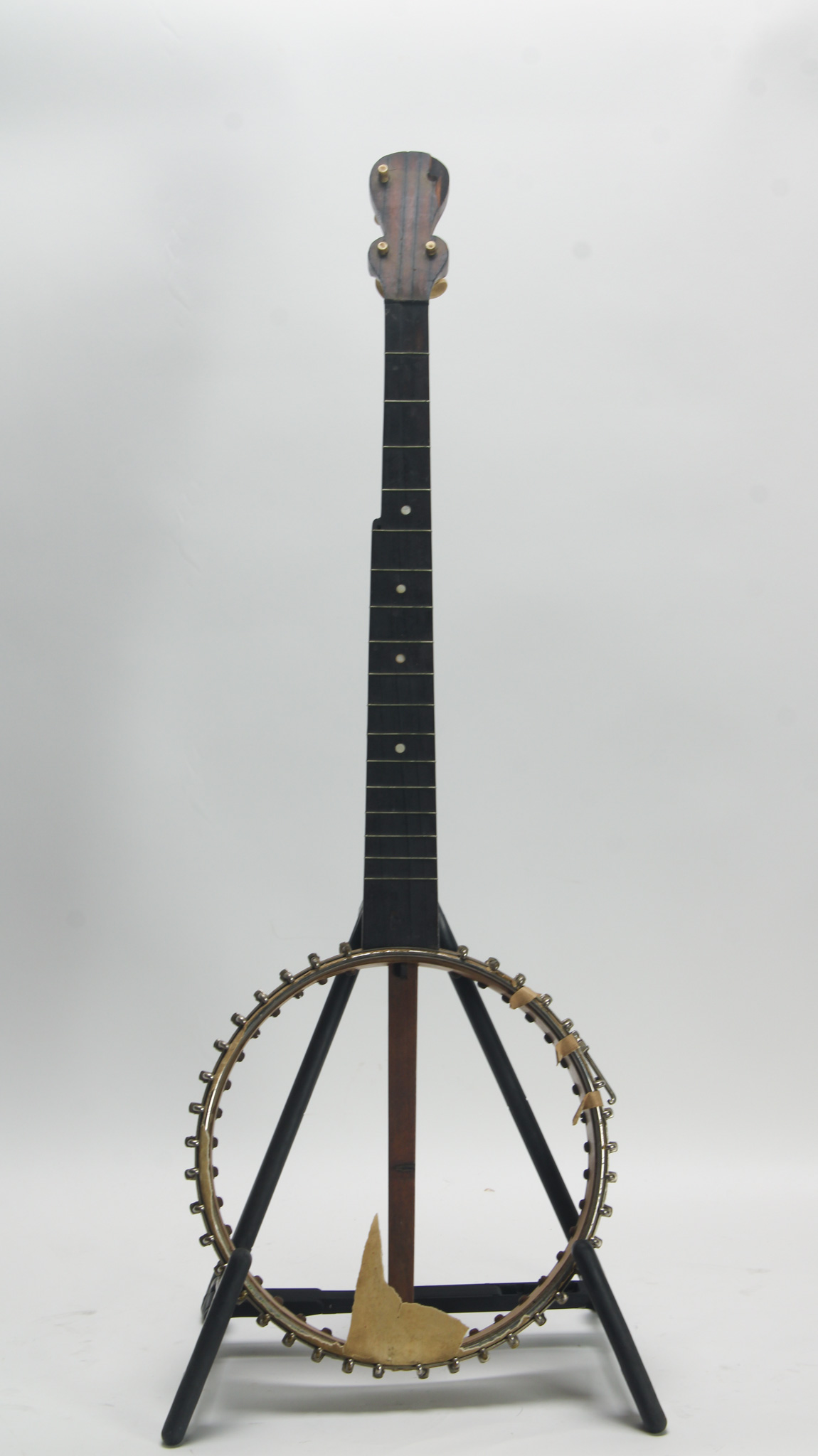 Attributed to J.H. Buckbee, a worthy project, featuring a 10-3/4" diameter spun-over rim with all original hardware, including 38 brackets; no tailpiece or end pin. The 26" scale mahogany neck has a...