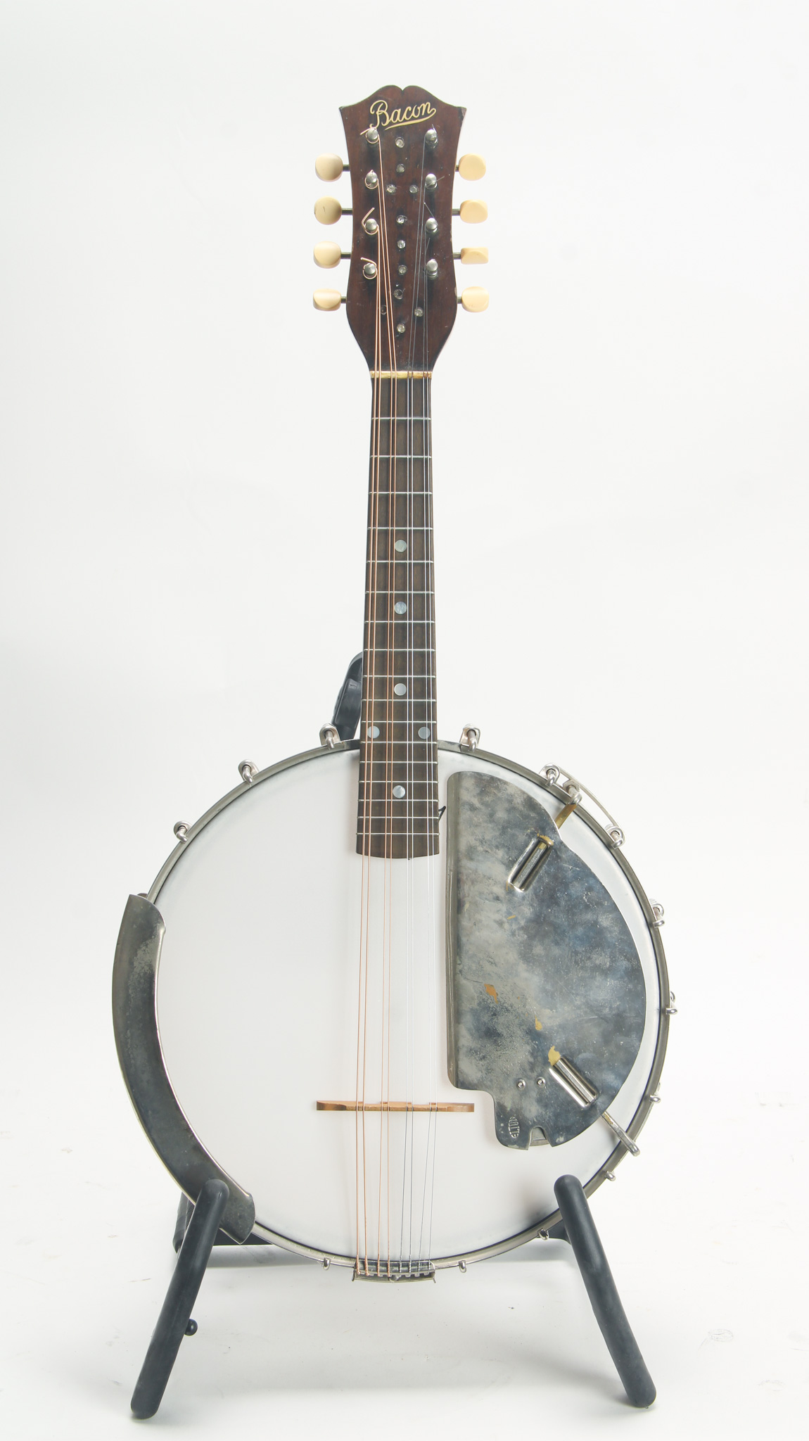 Well equipped Bacon "Peerless" model banjo mandolin from 1922 that seemed to be sponsored by Elton hardware! The 10" maple rim assembly has a simple rolled tonering, with all original hardware...