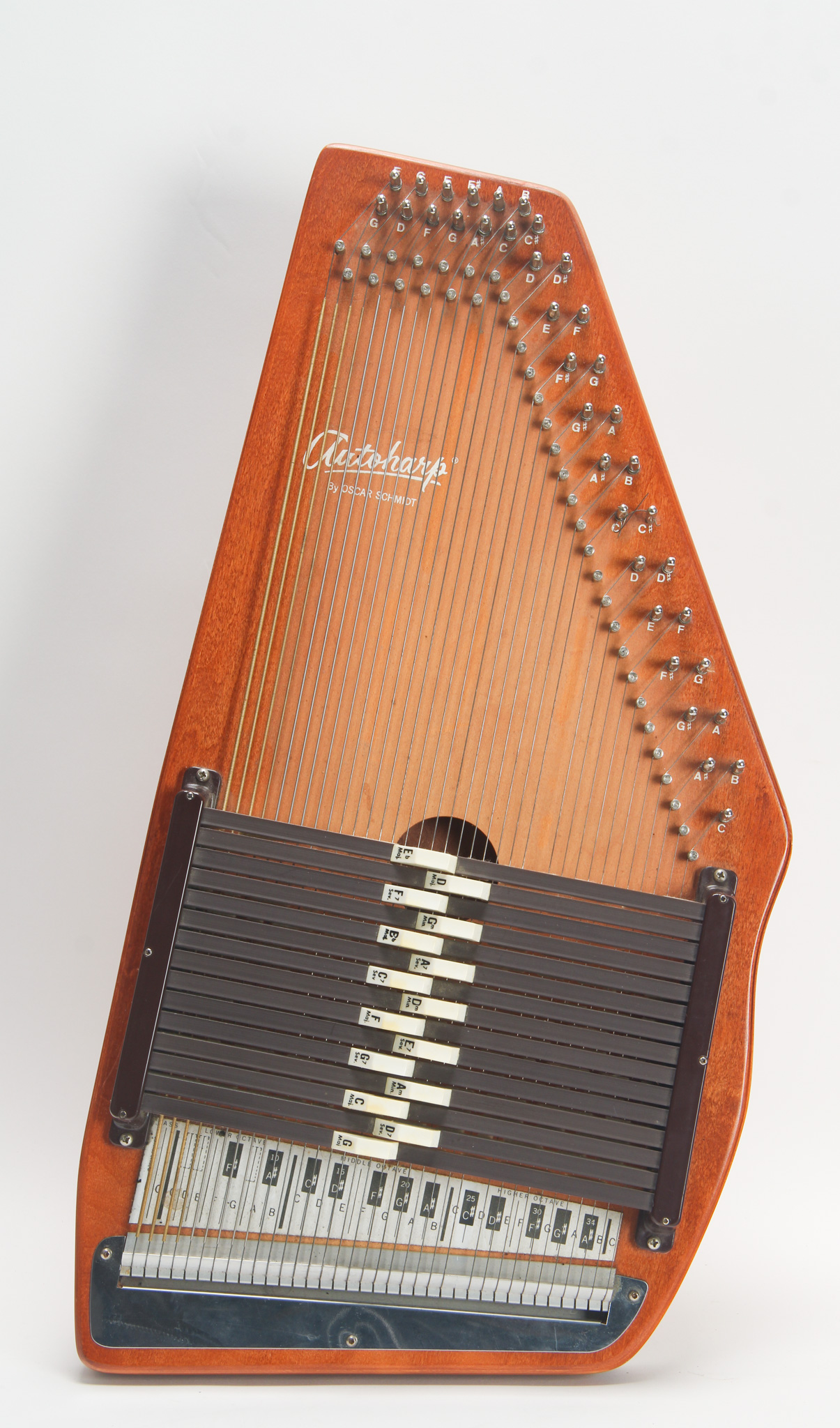 This is an 21 chord Appalachian Autoharp by Oscar Schmidt. The body of this autoharp is made from maple and spruce woods with a glossy finish. All the pads on the chord buttons work well and it has...