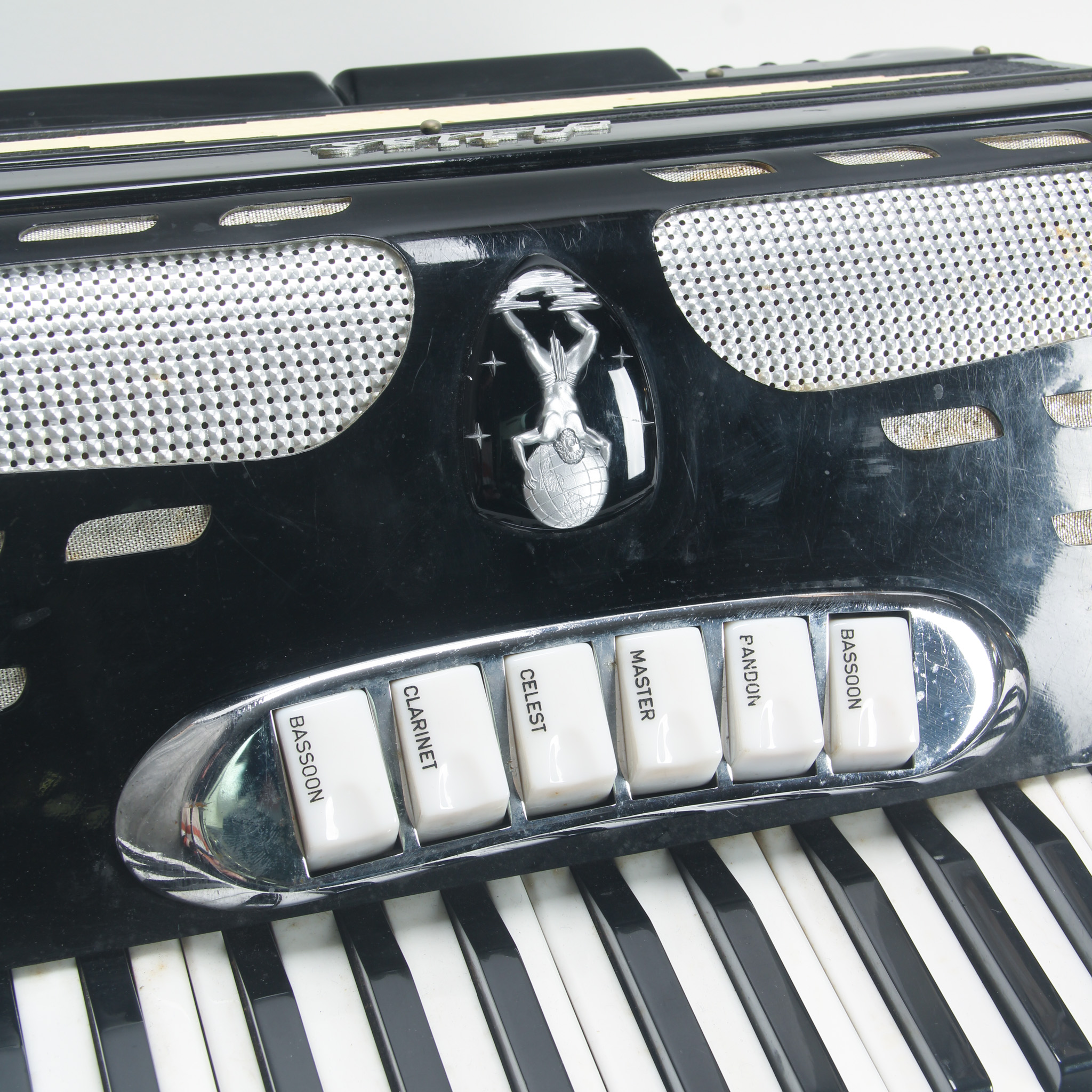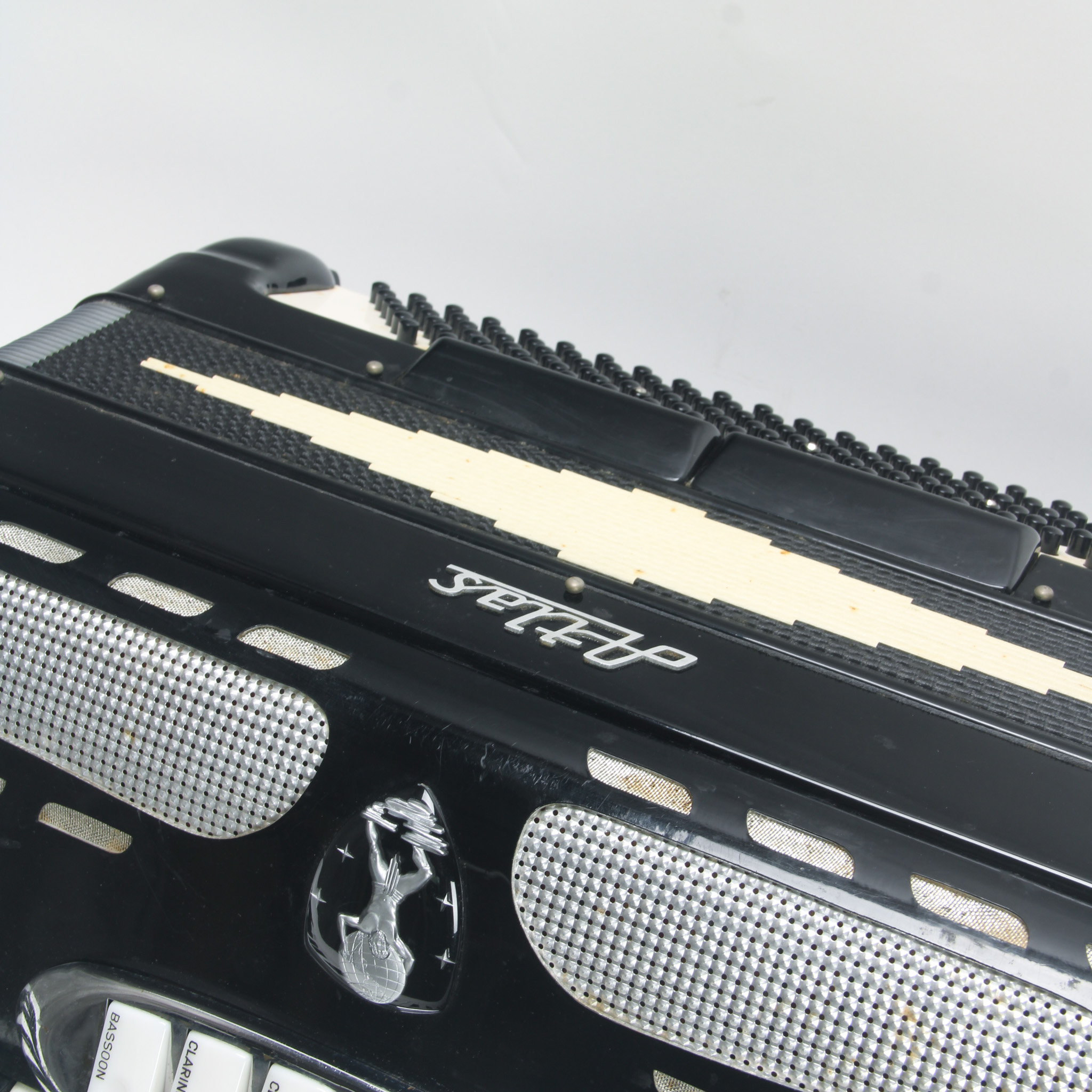 This black Atlas accordion is a compact model with 41 keys and 120 bass buttons. It is in working condition. Tuning is a slight bit off but overall a great deal for the price. Comes with what appears...