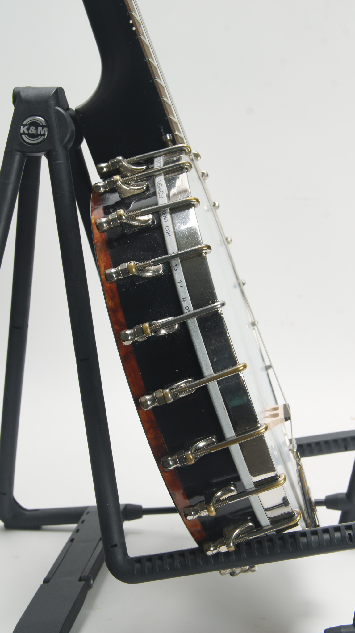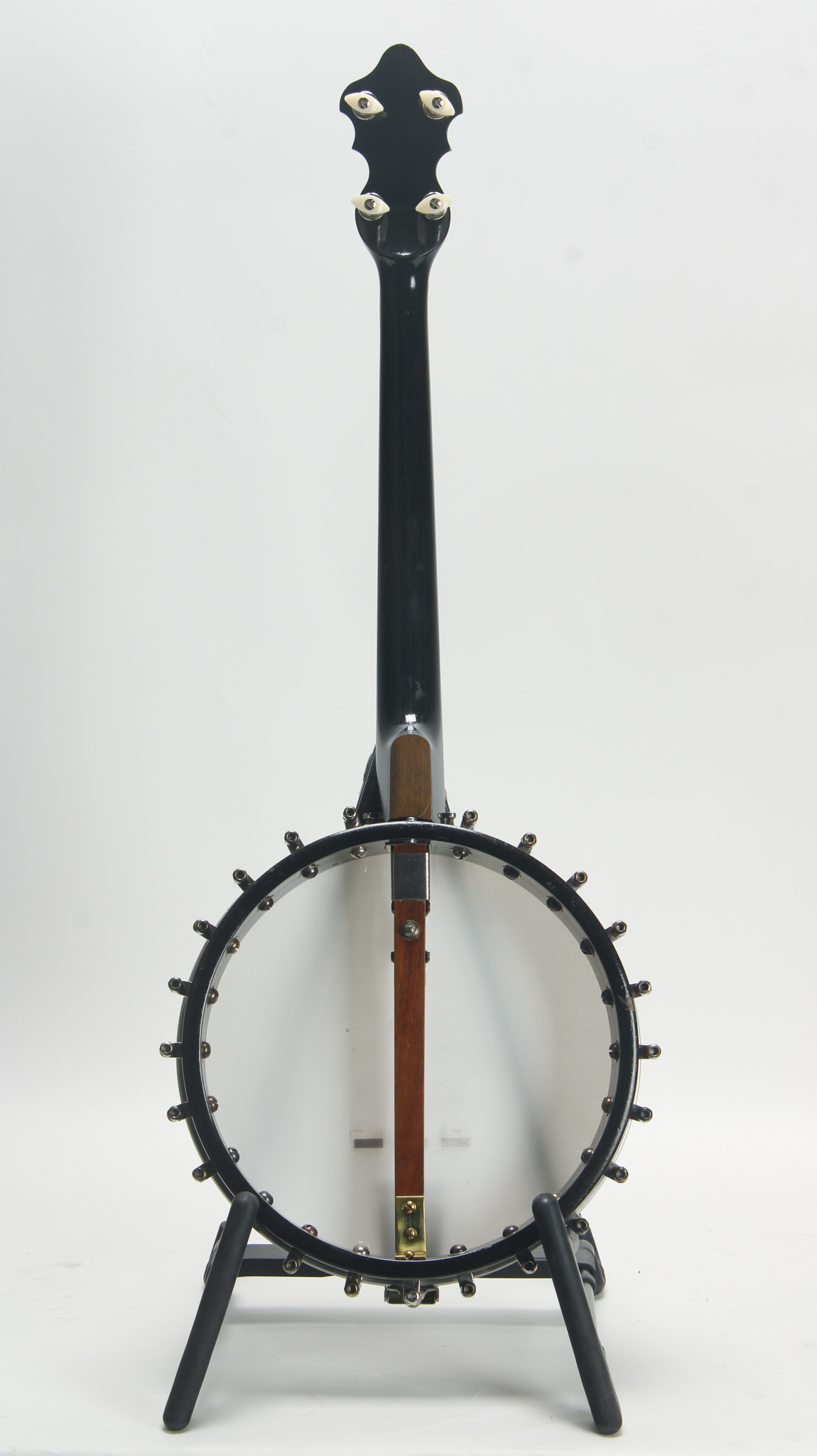 This appears to be an old Slingerland banjo thas been equipped and fitted with an interesting neck adjuster as well as internal hardware that is certainly not original to the banjo. It has new gear...