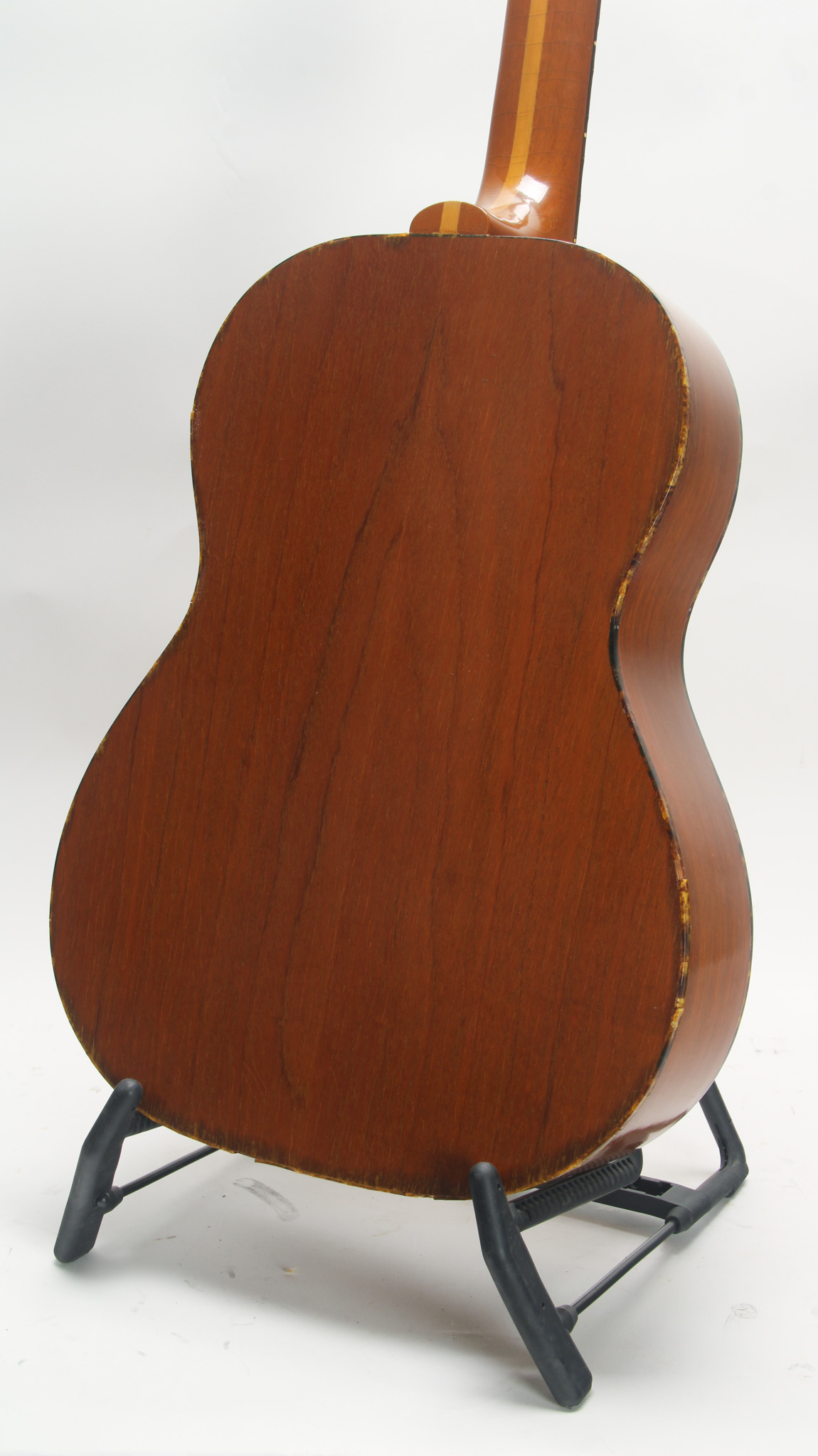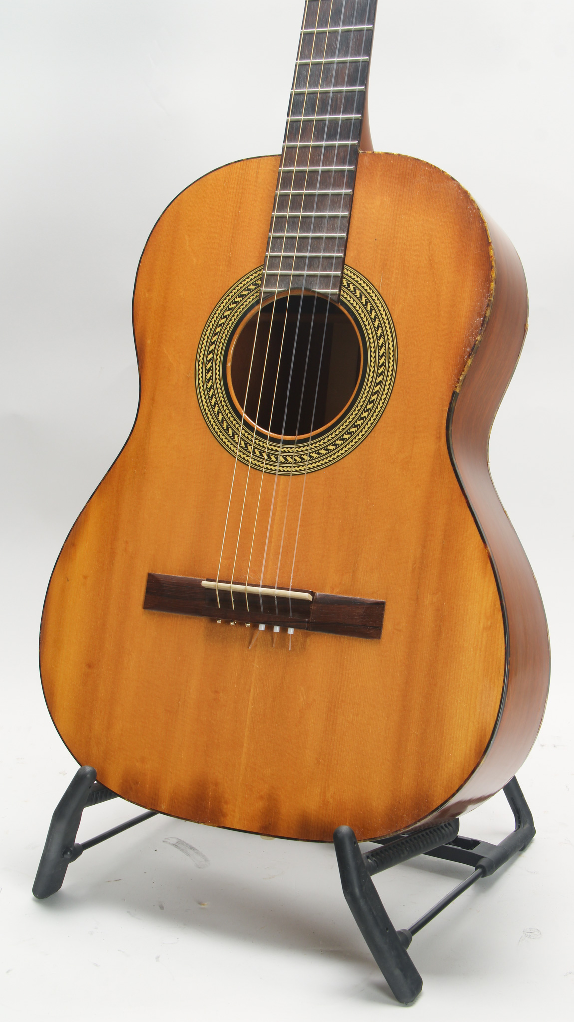 The Gibson C-1 manufactured from 1957-1971 is a spruce top classical guitar with mahogany sides and back. This example is from the mid 60s'. Ladder braced spruce top with rosewood bridge and a large...
