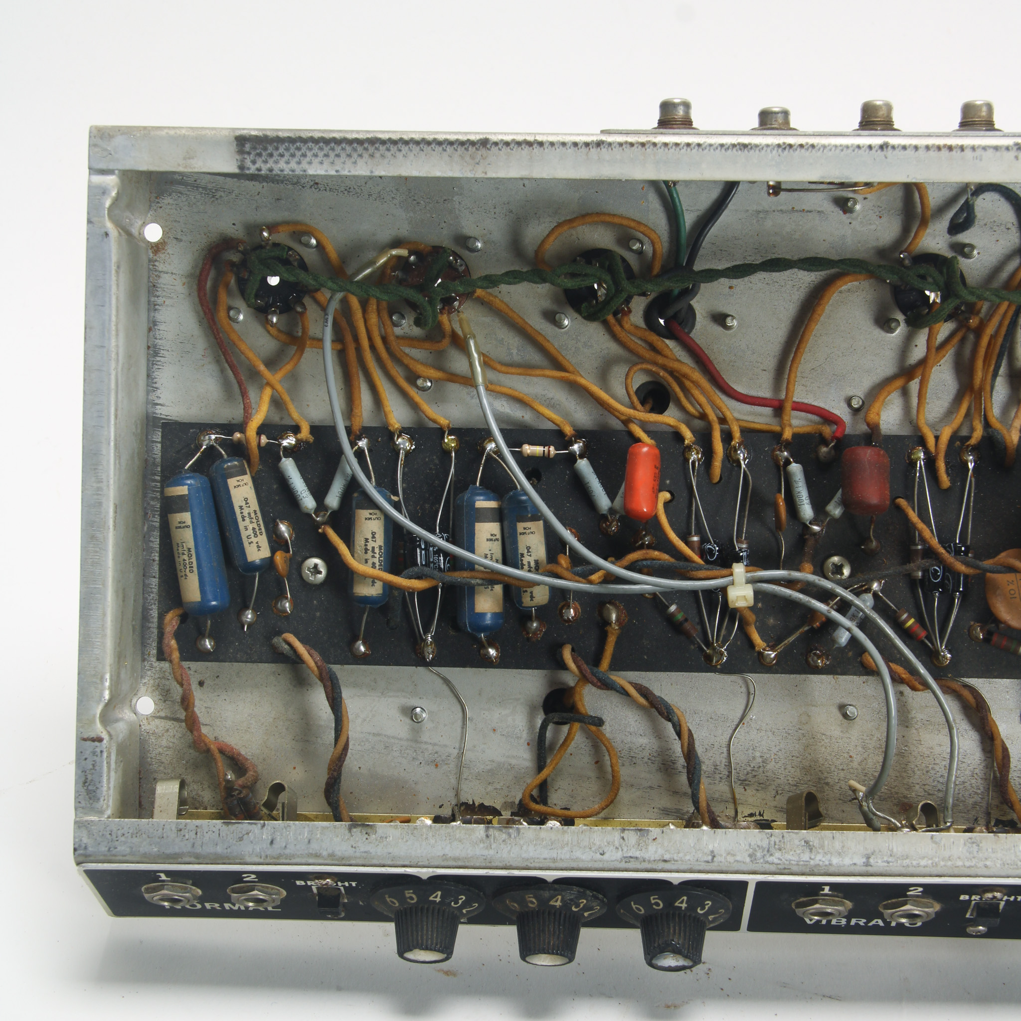The Super Reverb is a powerful and well equipped combo amp suitable for virtually every style of music. This blackface example dates to 1966 originally and is a very unusual example with a set of...