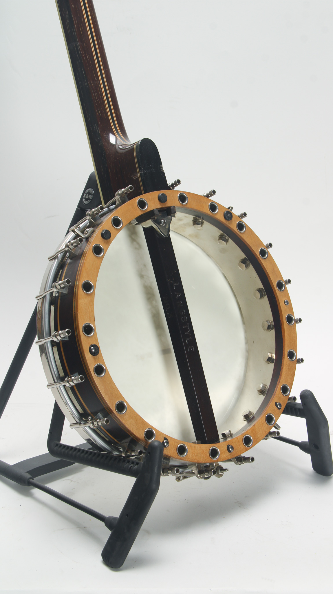 <p>A superb conversion of a Lange Professional No.3 pot, featuring a 5 string neck constructed by Leo Coulson of Intermountain Banjo.<br>The 11 1/8" rim of this banjo is quite impressive - 3/4" thick...