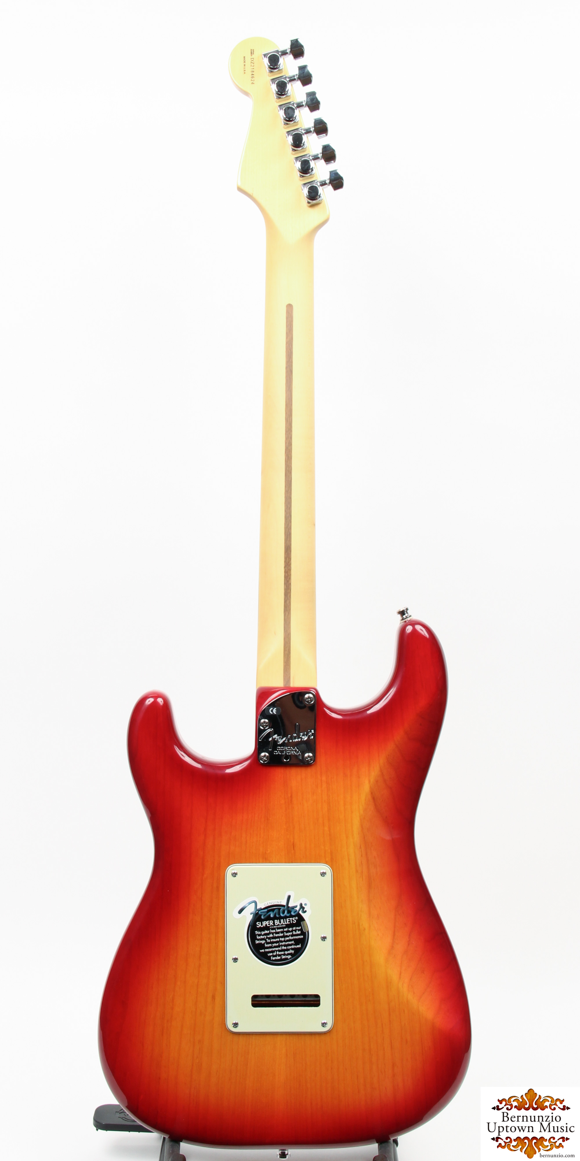 For nearly 15 years, this guitar has been sitting in its case. Now it is ready for you to play. This deluxe stratocaster is in a red burst with rosewood fingerboard and is armed with Fender noiseless pickups and locking tuners. It has the smallest ding on the headstock. It comes complete with all of the hang tags and original documents, and still has the plastic on the pickguard and back plate. Comes with the original hard shell case.