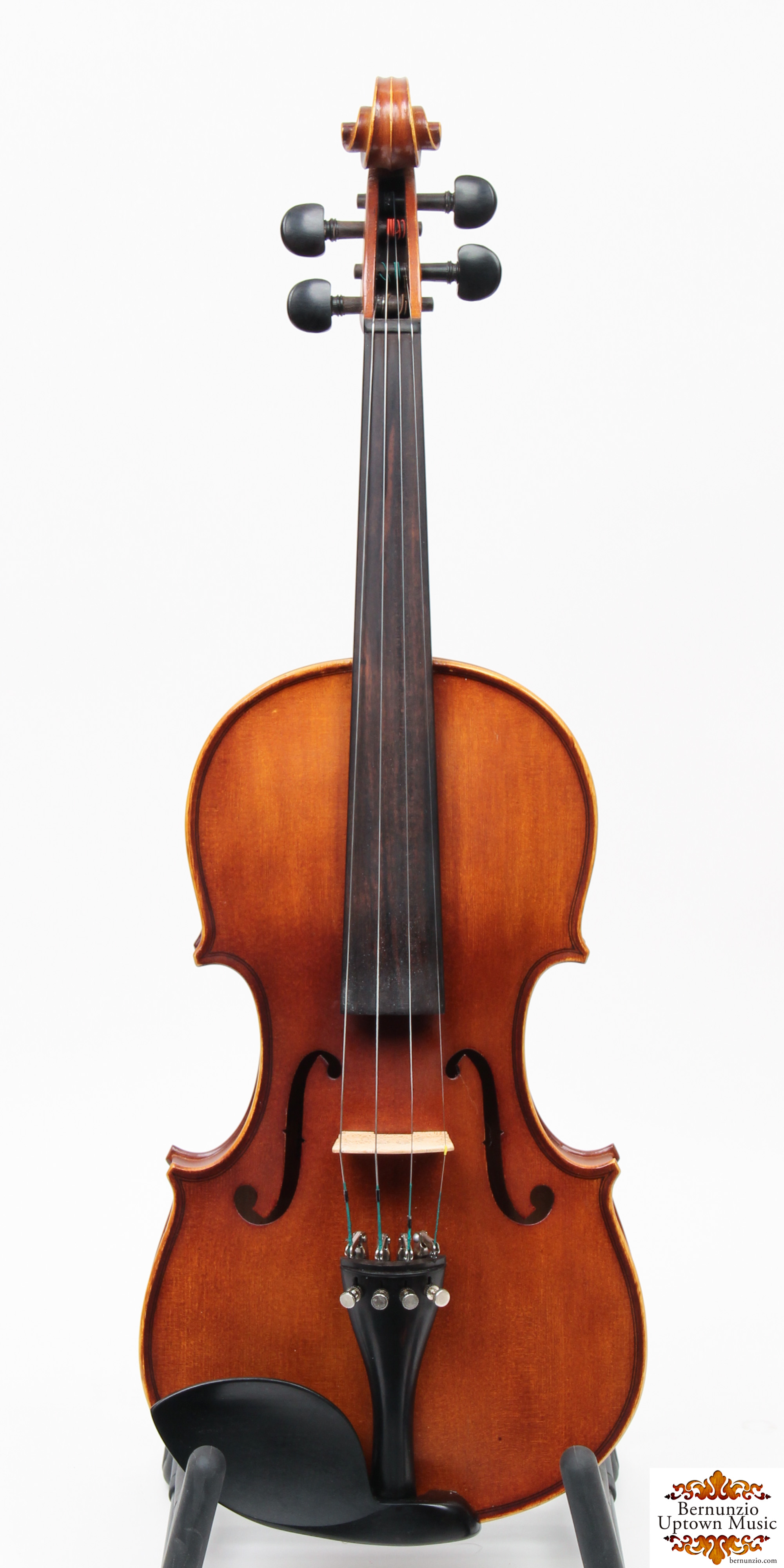 A Morelli violin that proclaims on the label "Morelli: A product of Italian Engineering." However, this was made in Germany ca. 1955. Tight grain European spruce top with a one piece solid maple back and ribs with light curled figures. Currently set up with steel strings which sound exceptionally well for both fiddle tunes and orchestral music. Comes with case, bow, and shoulder rest!