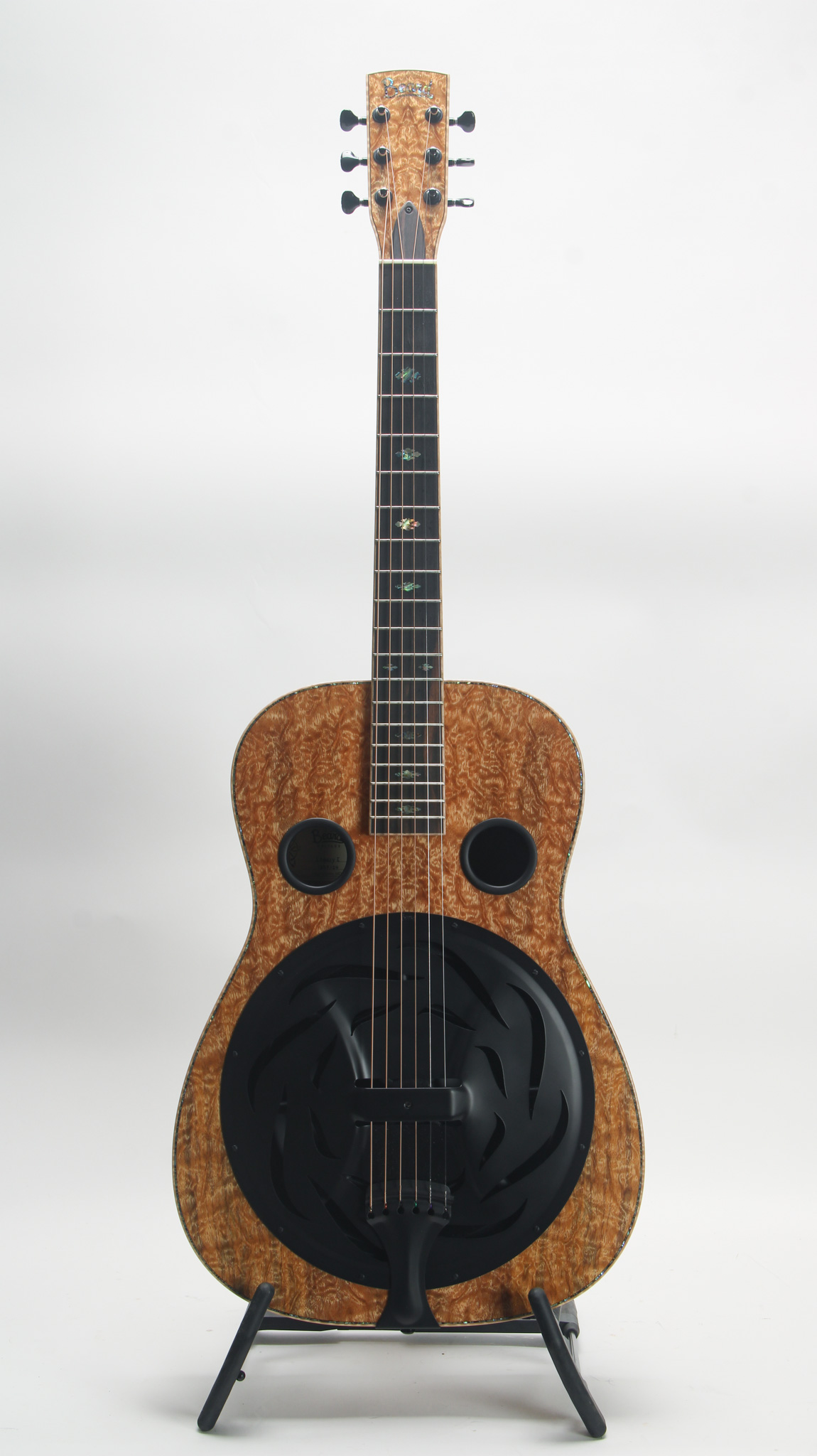 "In 1987 Paul Beard's first open body E Model set the bar for the stellar tone and responsiveness Beard Guitars is famous for. With its balance of power and subtlety the E Model is the ultimate workhouse resonator. Whether you're playing solo or cutting through a crowded mix, the E Model does the job."