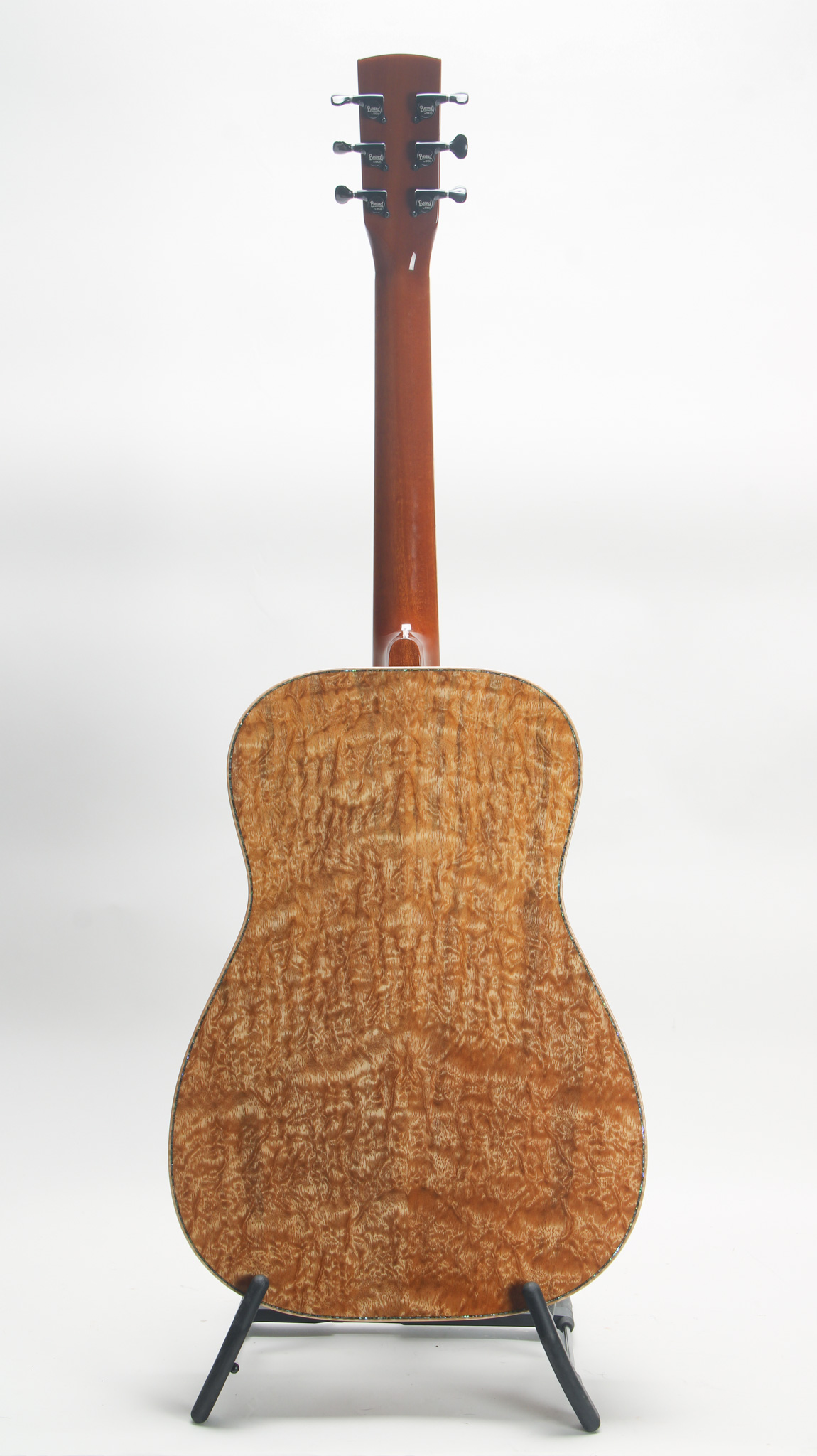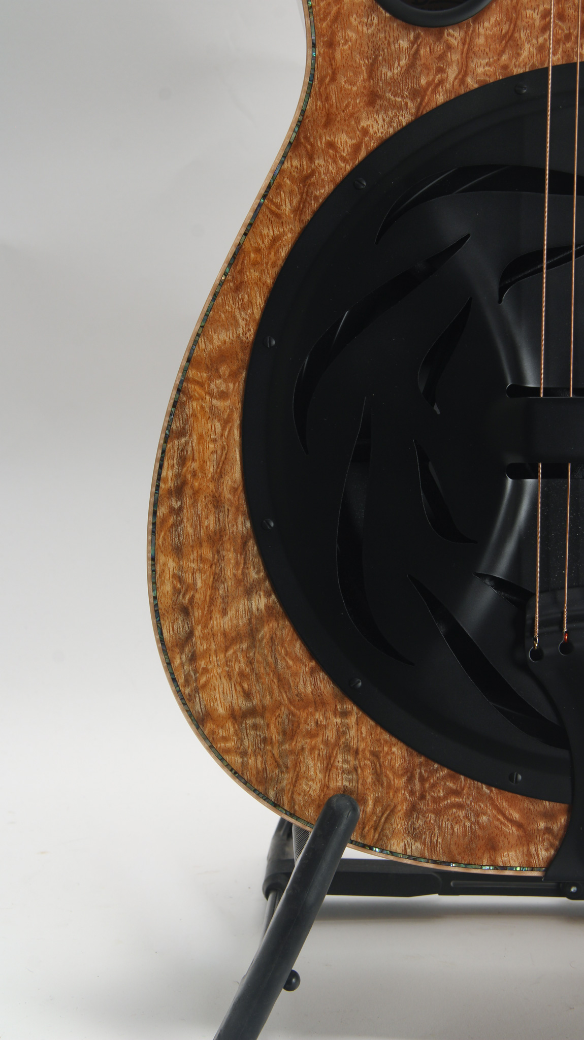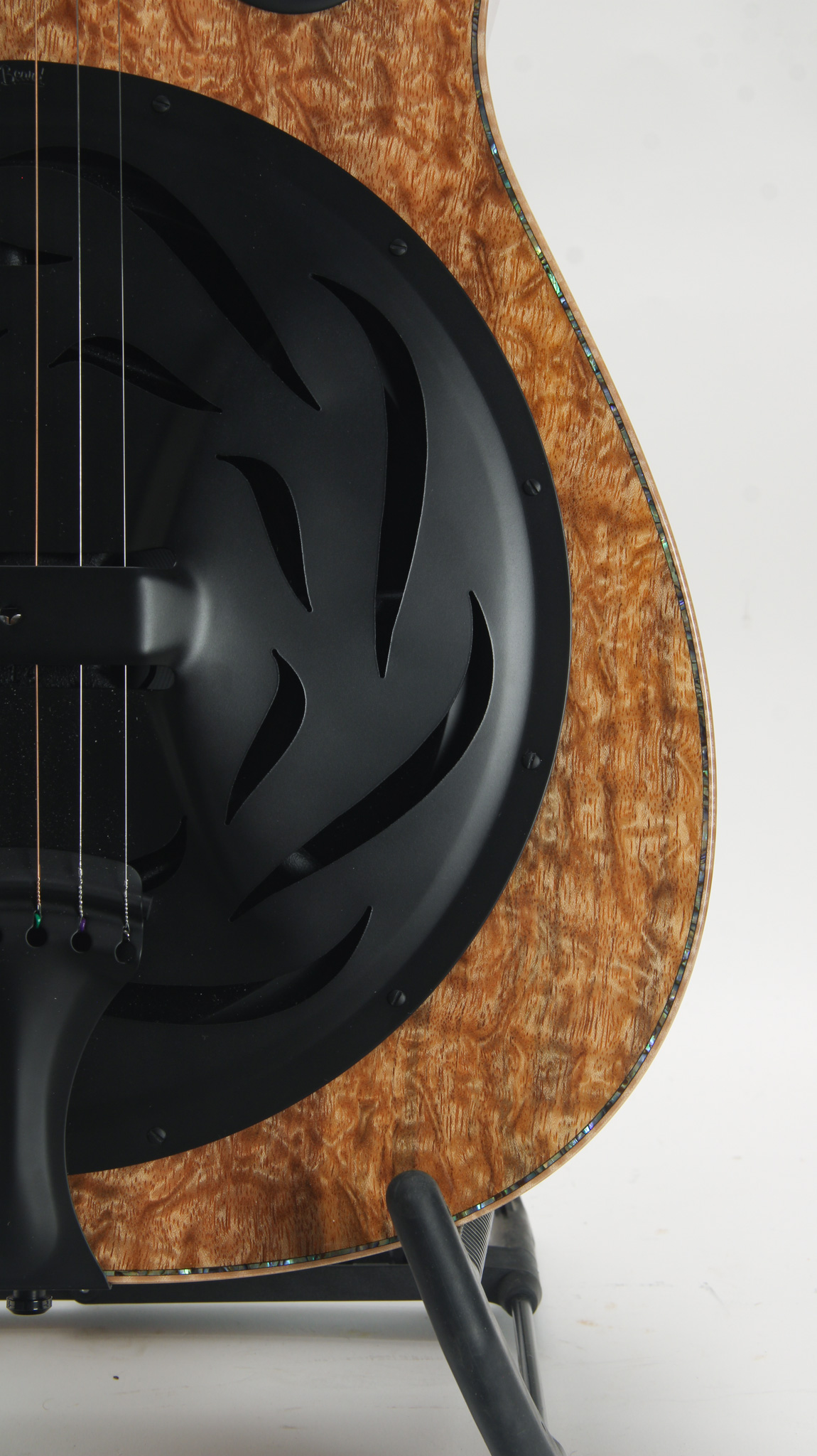 The Legacy E model is a highly customizable instrument offered by the legendary Paul Beard's workshop. Here we have one, lightly used dating to only 2024. Configured with a non cutaway body design built out of incredibly figured Maple - it is sure that there are very few others like it. Abalone and maple binding add too the glitz appeal in this finely built instrument. It is outfitted with all black hardware, including the style 14 cone and tailpiece, down to the 510 tuners. Open and airy, this powerful instrument has incredible volume, complex tonal depth with punchy low end and shimmering high end - its a real treat to play either Spanish style or slide. Setup with a factory Fishman Nashville pickup. Cosmetically this example is like new without a mark on it.
