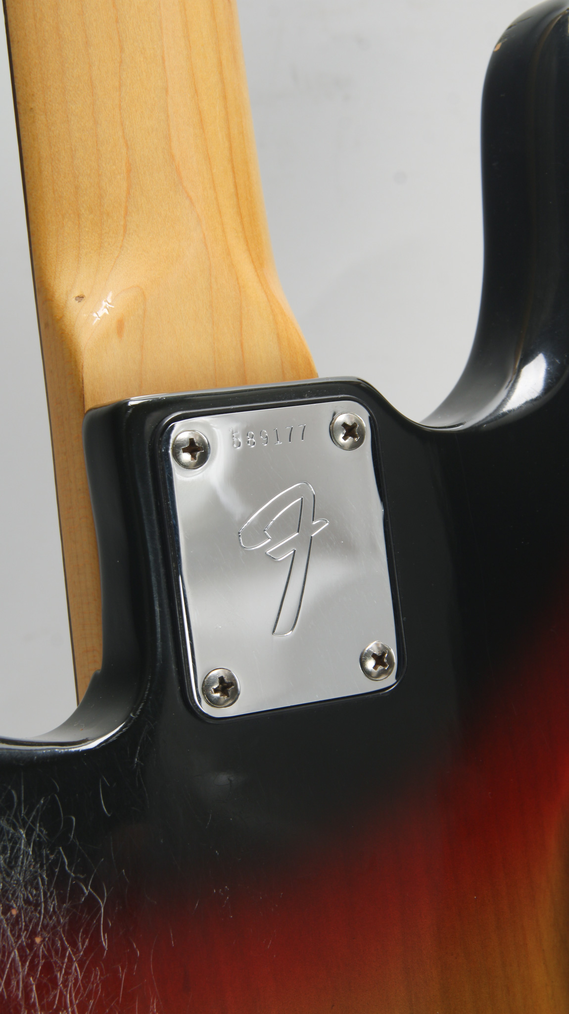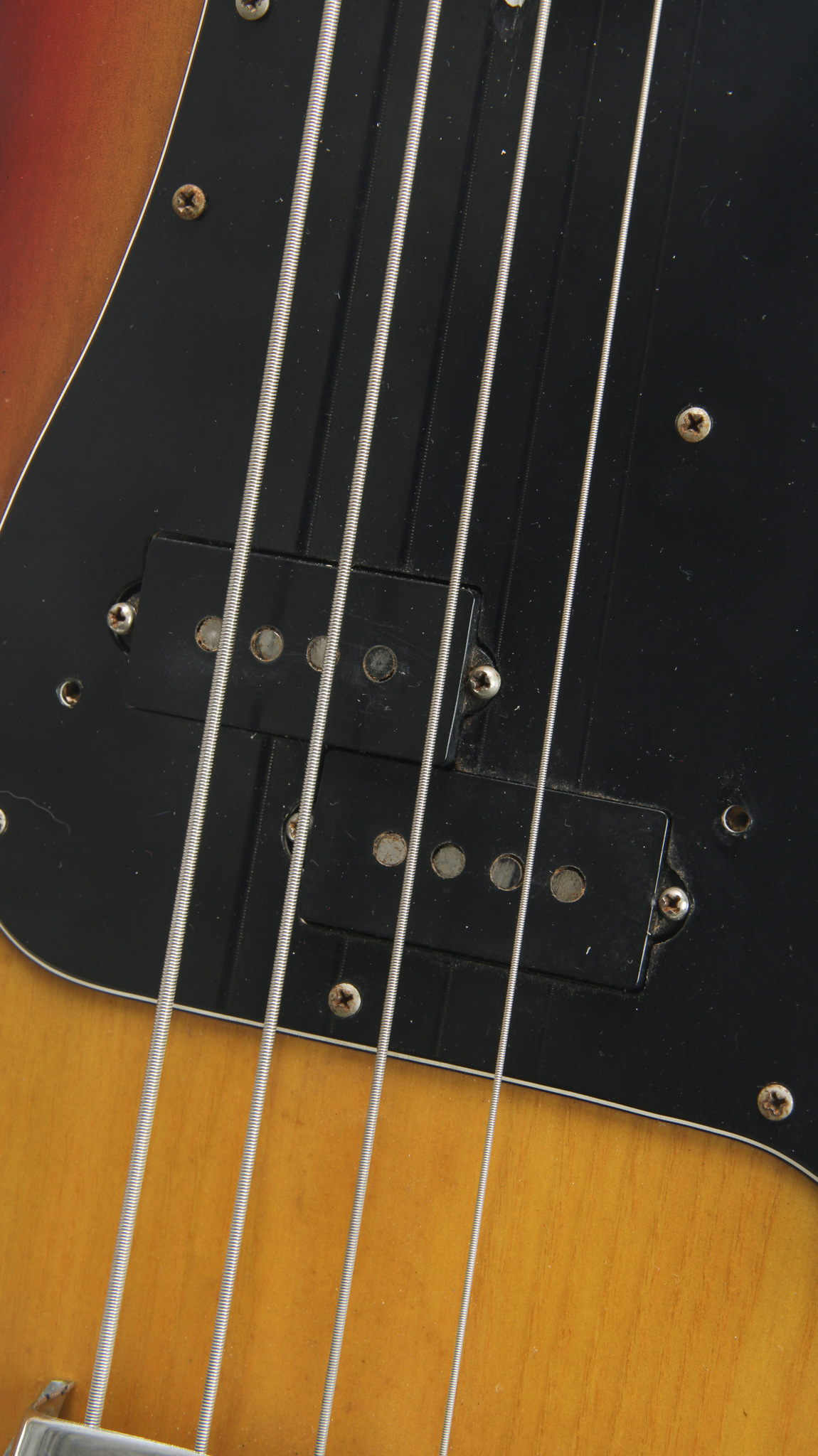 This particular instrument is player owned coming to us in great original condition dating appropriately to early 1976. Original three tone sunburst over a nice ash body (which appears to be one piece). All original, it retains its bridge, pickups and pots - a pickup cover long removed. Original pot codes date accurately to early '76 and without the serial number at the headstock it likely was one of the last before the transition switch. Poly finish, it is in good condition with some typical light nicks and dings present with a bit of buckle rash on the back towards the lower horn. Three ply black pickguard has some wear from the past owner.