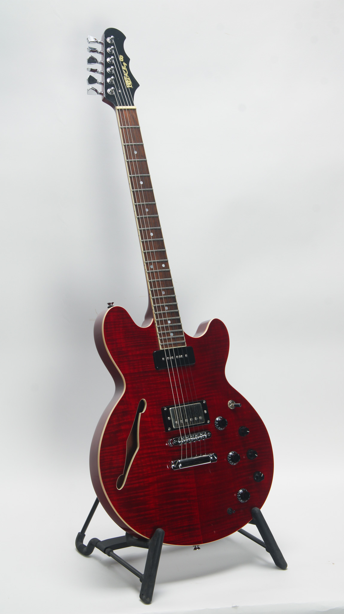While immediately this guitar goes for the throat of any 335, it does offer up a convincing acoustic tone - and utilizing the blend lets one really play around between the dark P90 neck tone, and the versatility in the piezo. Wooly to thin and chimey, this is a dream for session player who needs a lot of tone on tap.
