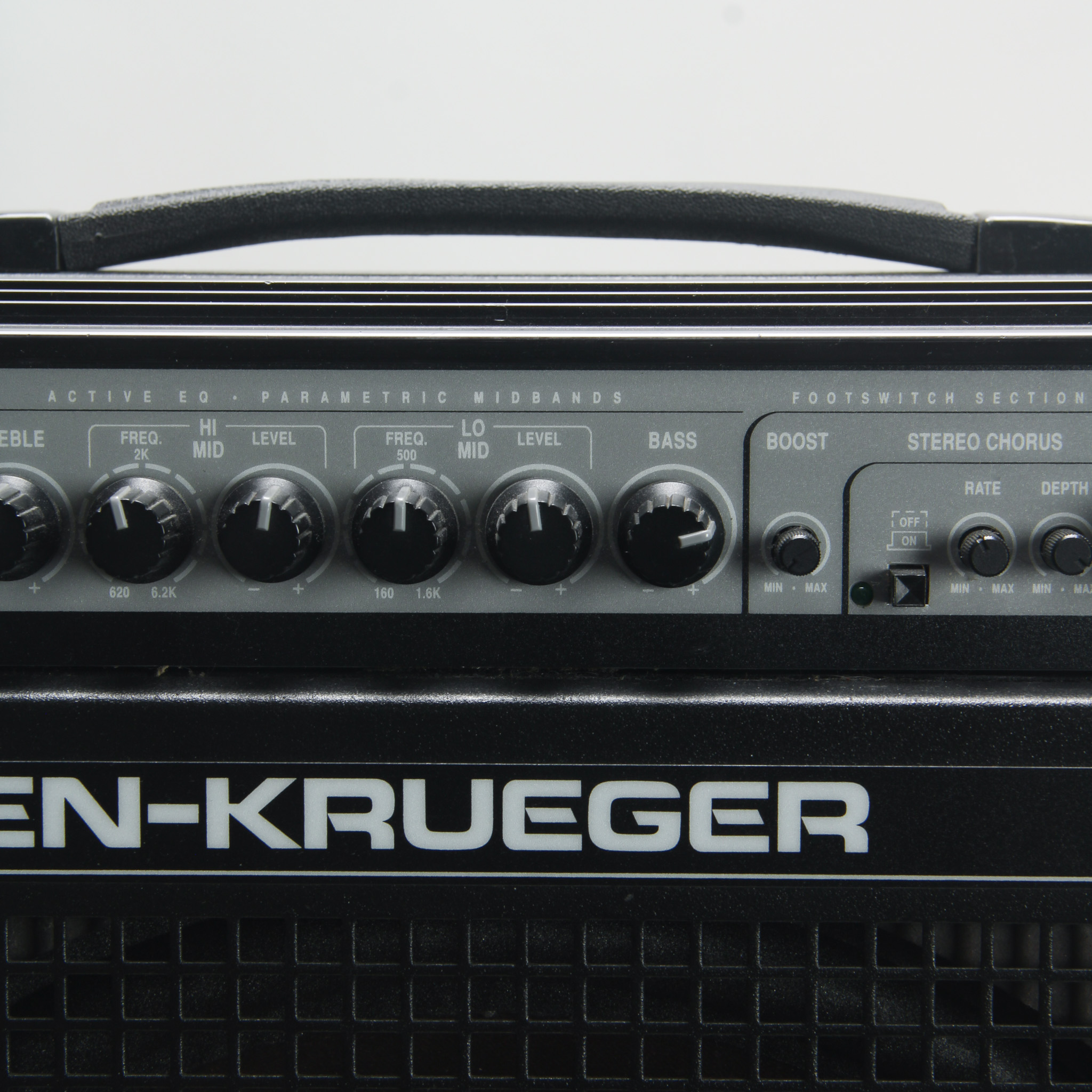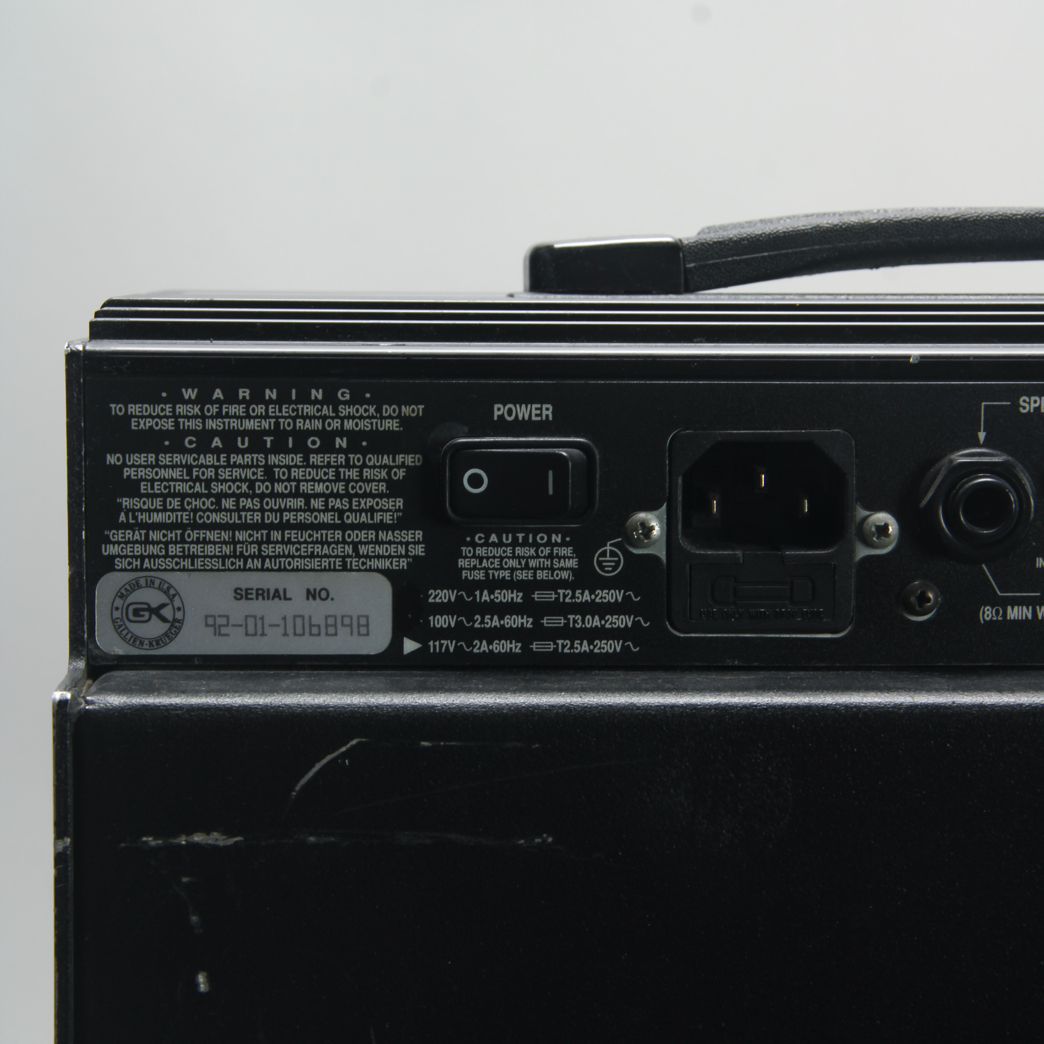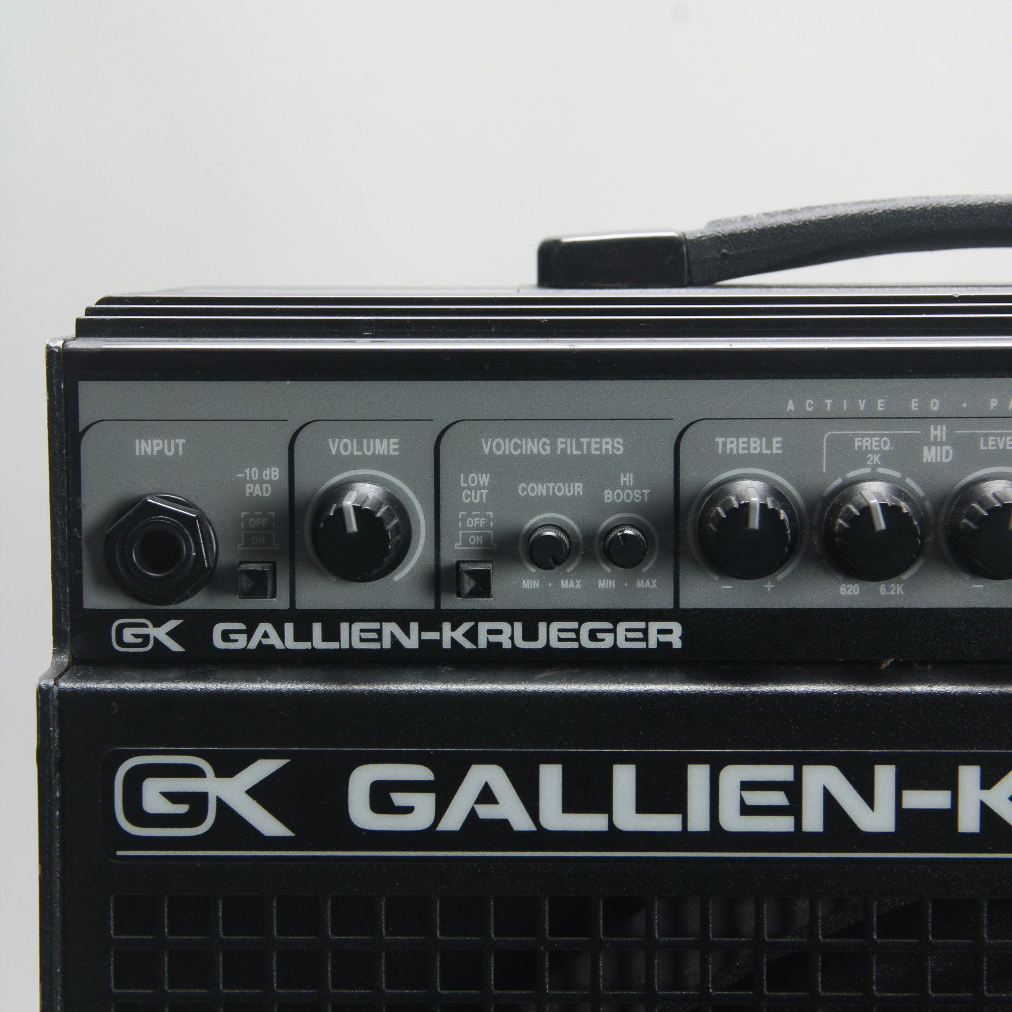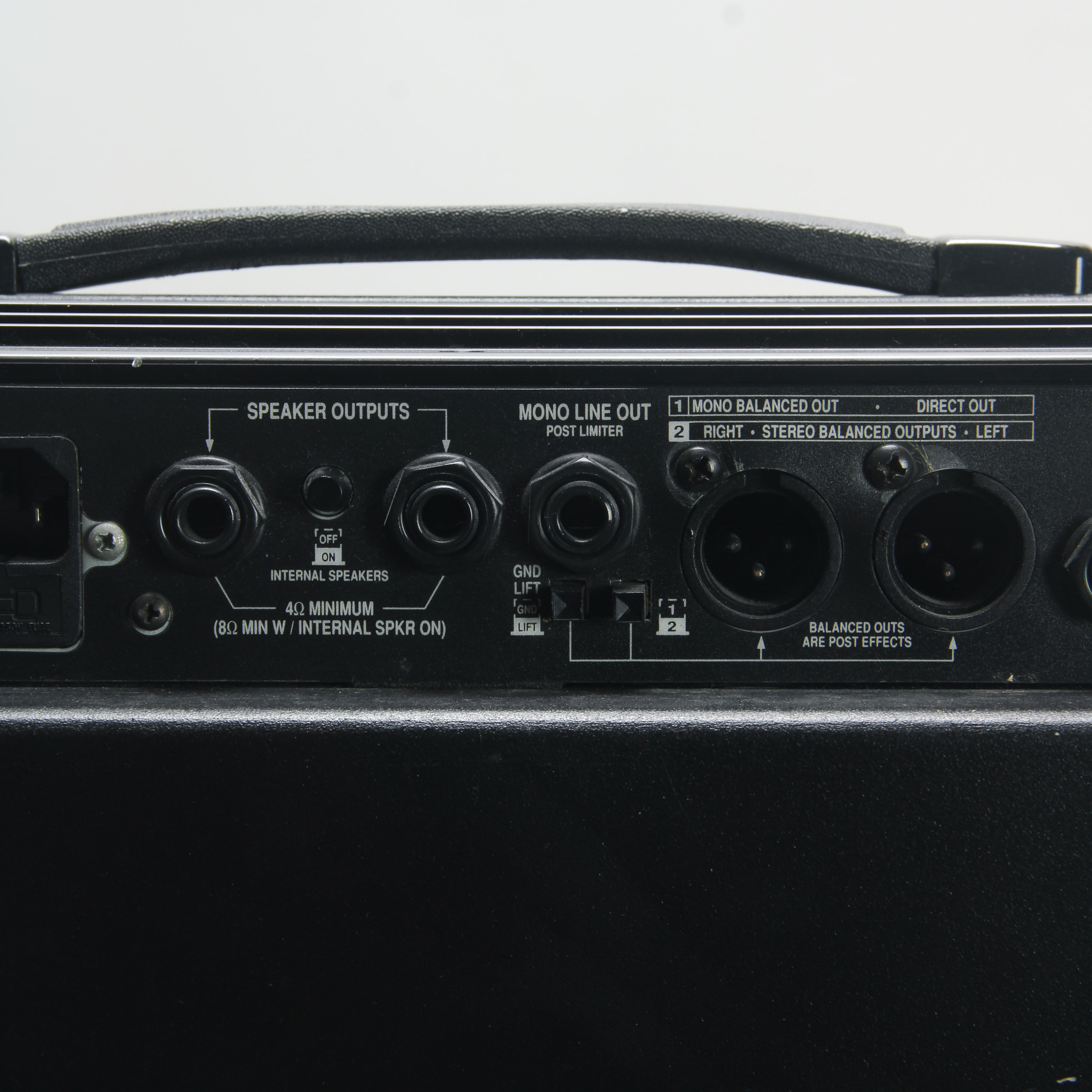 The Gallien Kruger MBE 112 is a well regarded bass combo, still sought after for its tight, focused sound and diminutive stature. At only 16"x14"x8.5" and 23lbs, it is ideal for practices or smaller gigs. Despite its small stature, it delivers 150W of power and is more than enough to keep pace with a band. Built in parametric EQ, limiter, and chorus give you plenty of tonal flexibility for any situation. The back panel boasts speaker outputs, line output, an effects loop for plenty of routing options