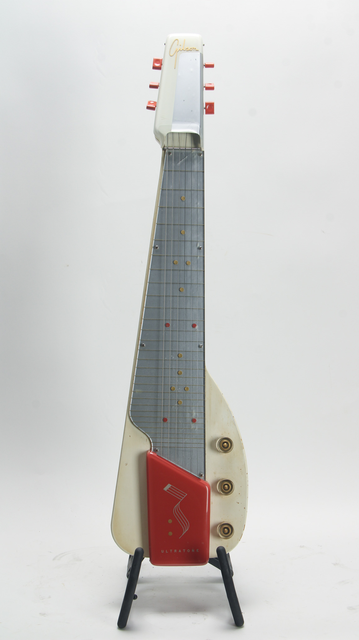 Originally designed as the BR-1 by Chicago industrial design firm Barnes & Reinecke and first appeared as the Ultratone in Gibson's 1947 catalog, which sought to capture the sleek design aesthetics of the 1940s and early 1950s.