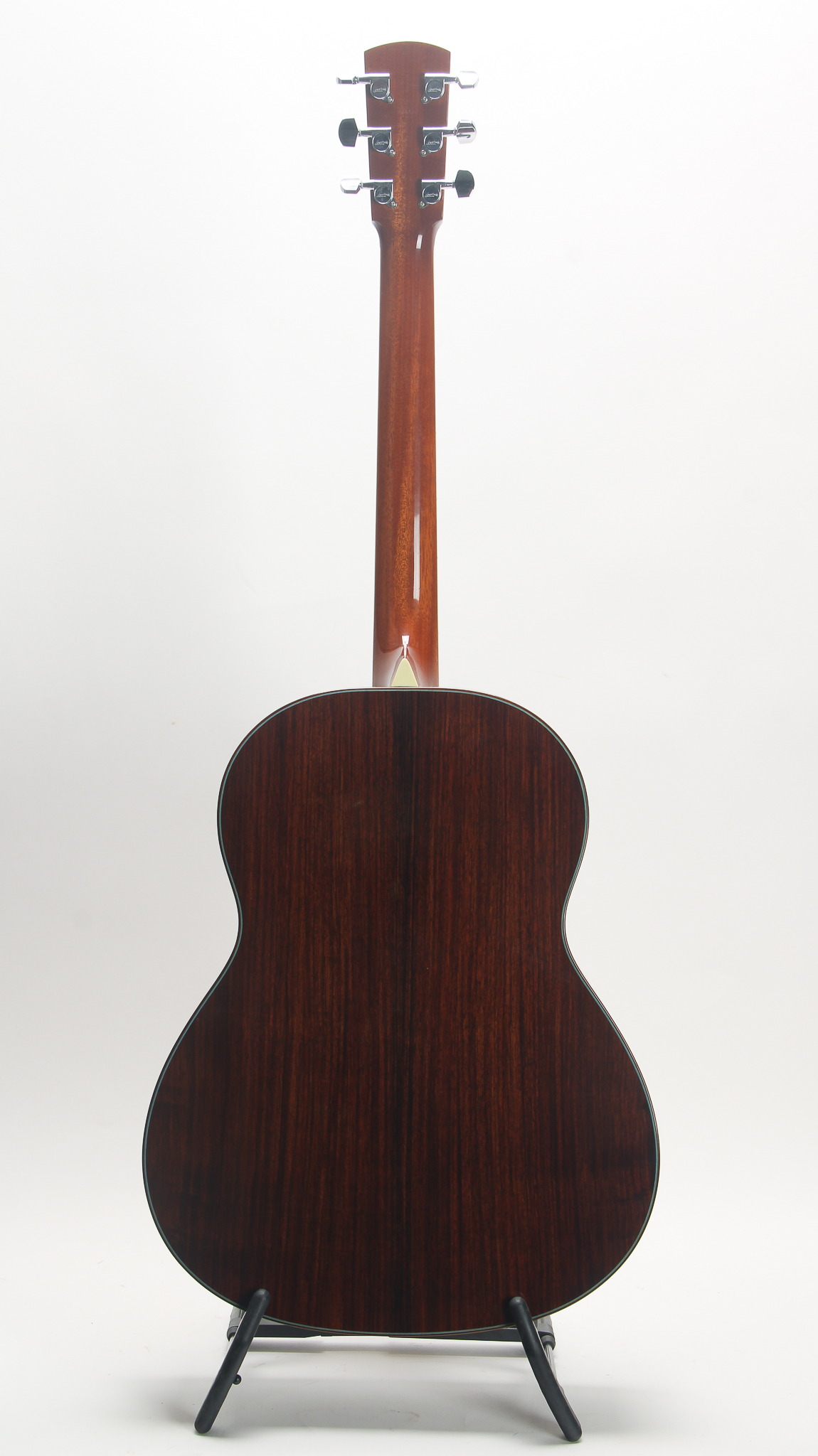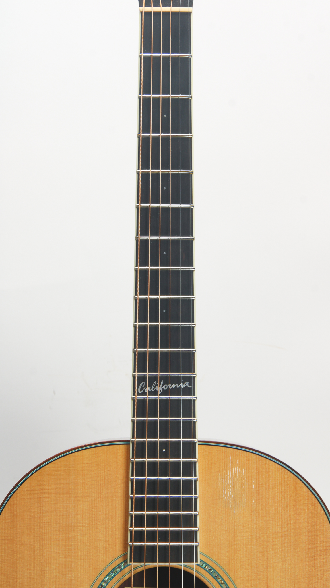 This limited California Special Edition was created to commemorate the relocation of Jean Larrivee's main workshop from Canada to Southern California in 2001. This example of the L-19 comes is detailed with a palm tree headstock inlay and "California" inlay on the 12th fret. It features a premium Canadian sitka spruce top, paired with East Indian rosewood back & sides, fully bound African ebony fretboard & ebony bridgeplate, & a Honduran mahogany neck. The binding features a thin blue-green line that accents the multi-layered binding around the top, sides & back of the body & the abalone soundhole rosette. The action is low at 6/64" at the 12th fret on low E and 5/64" on the high E and the nut width is 1 3/4". There is plenty of room to come down on the saddle as well. This guitar is quite clean considering it is now over 20 years old. There is some wear on the finish on the top below the finger board and a few small dings on the lower bought. Comes with the original Larrivee hard shell case.