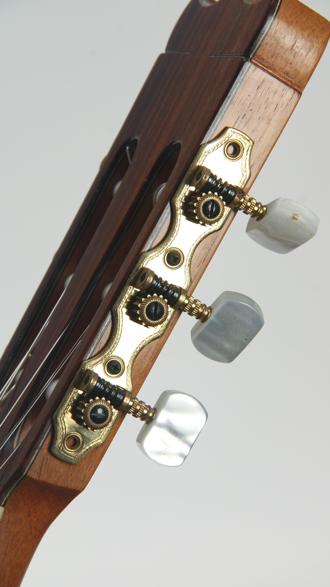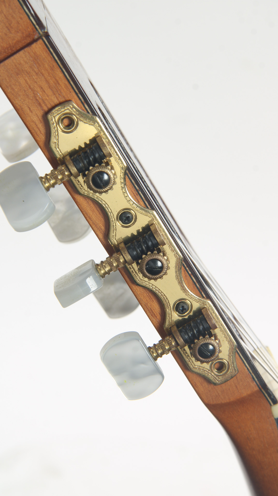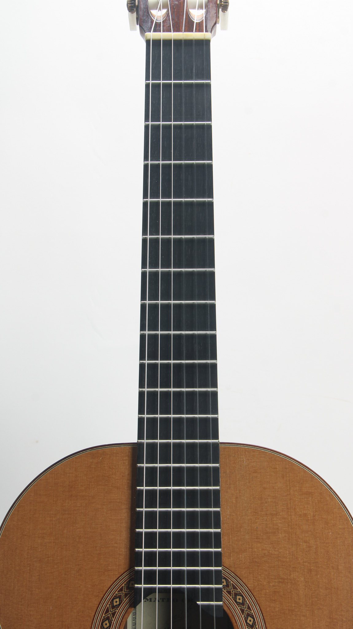 The neck is designed with a standard 650mm scale length - the neck made of what appears to be Spanish cedar with an ebony fingerboard. The neck is nice and straight with action that measures to a standard 6.3mm in height at the twelfth fret. The tuners appear to be an aftermarket.