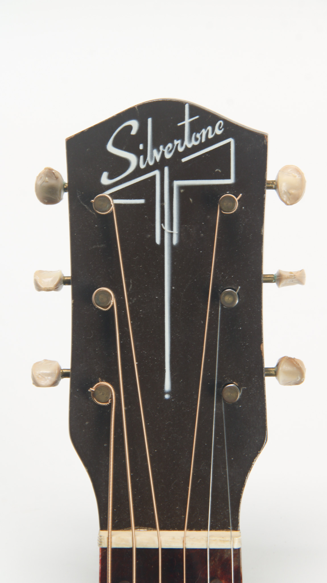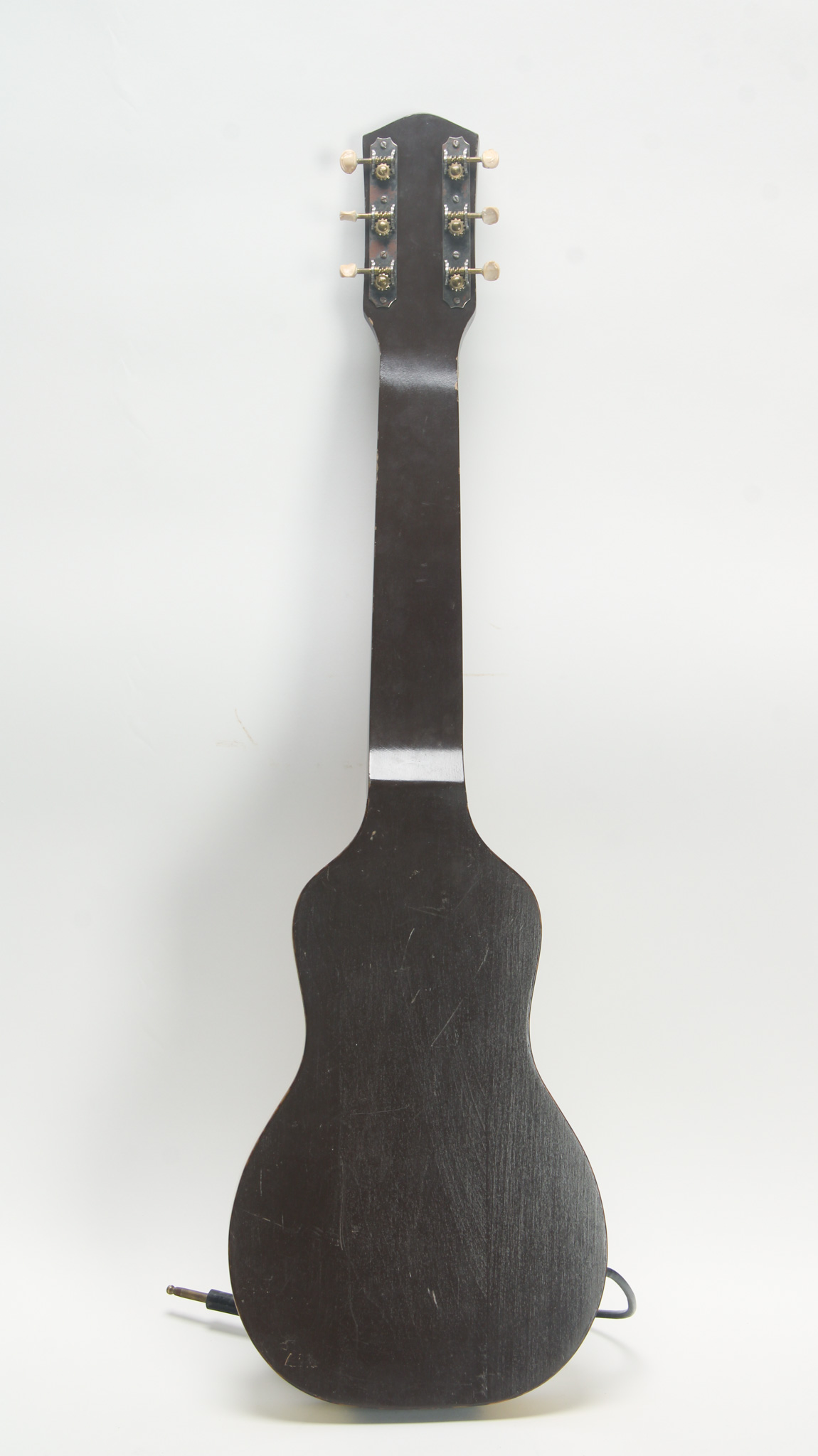 Being realistic about this example, it has the original speed bump pickup, and brown molded plastic knobs - all in good working order. These parts would be ideal for anyone looking to make a CooderCaster or something of the like. Original plate tuners function, but the buttons have shrunken fairly significantly.