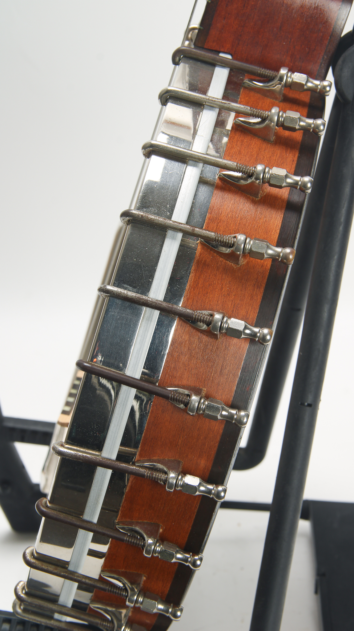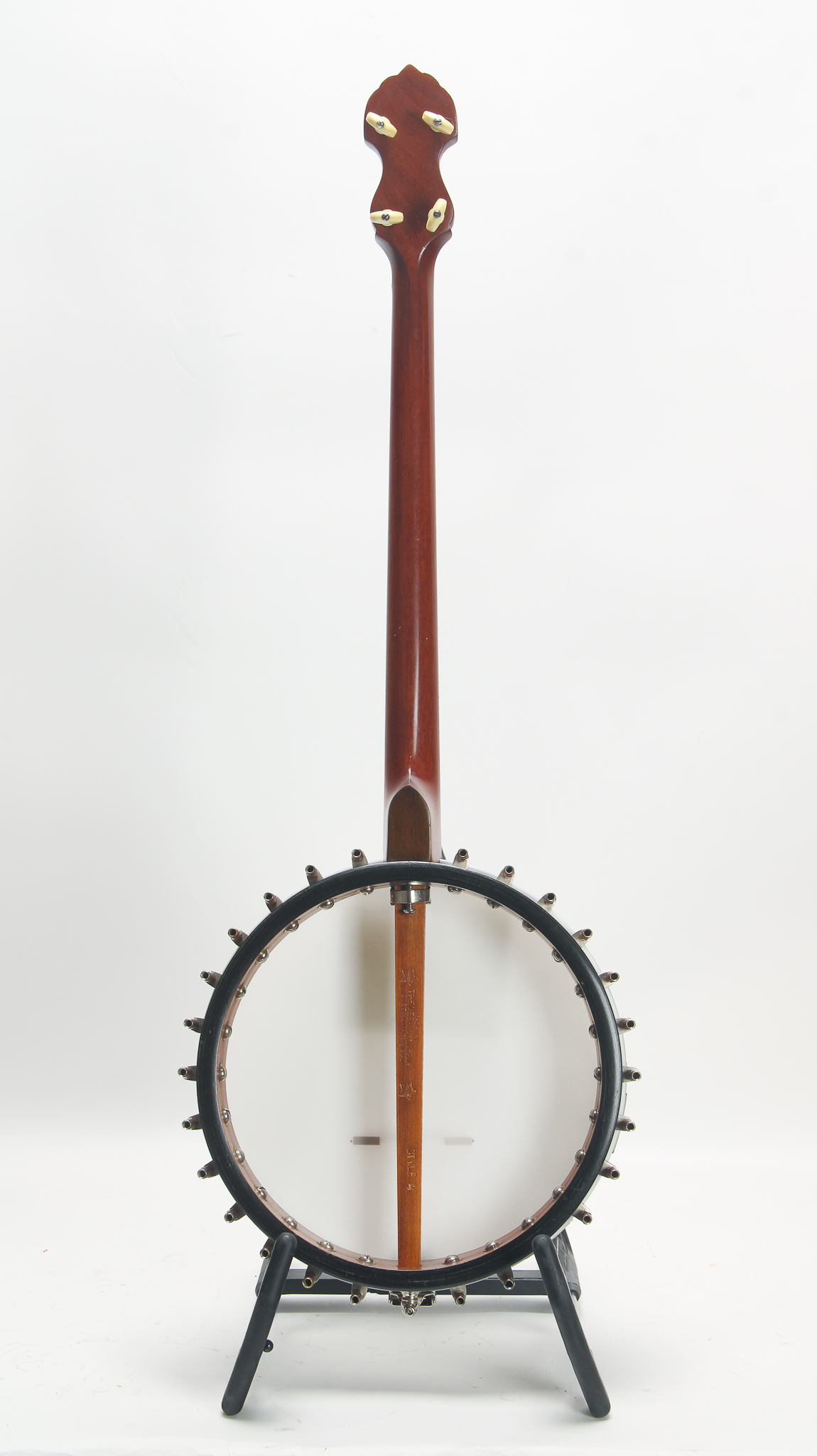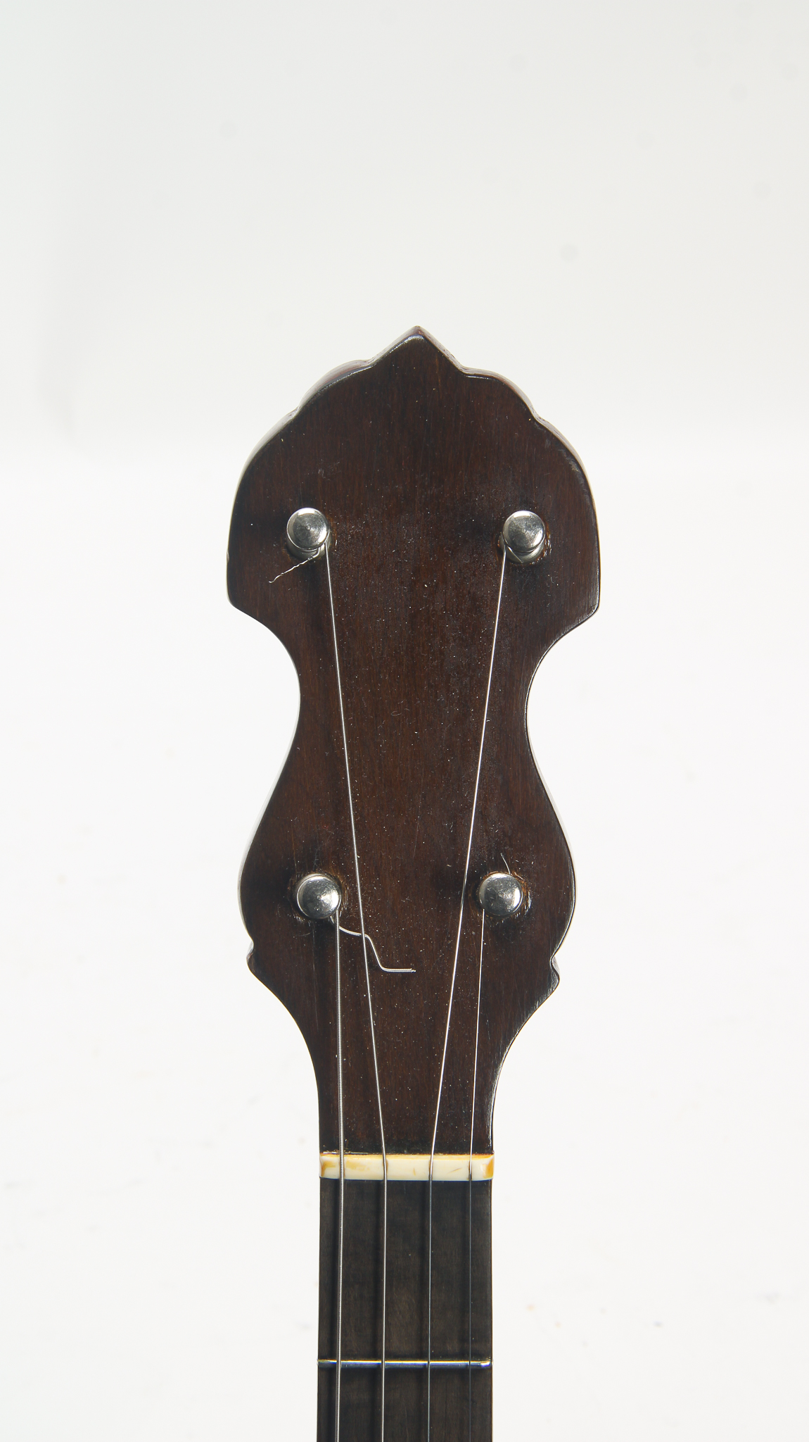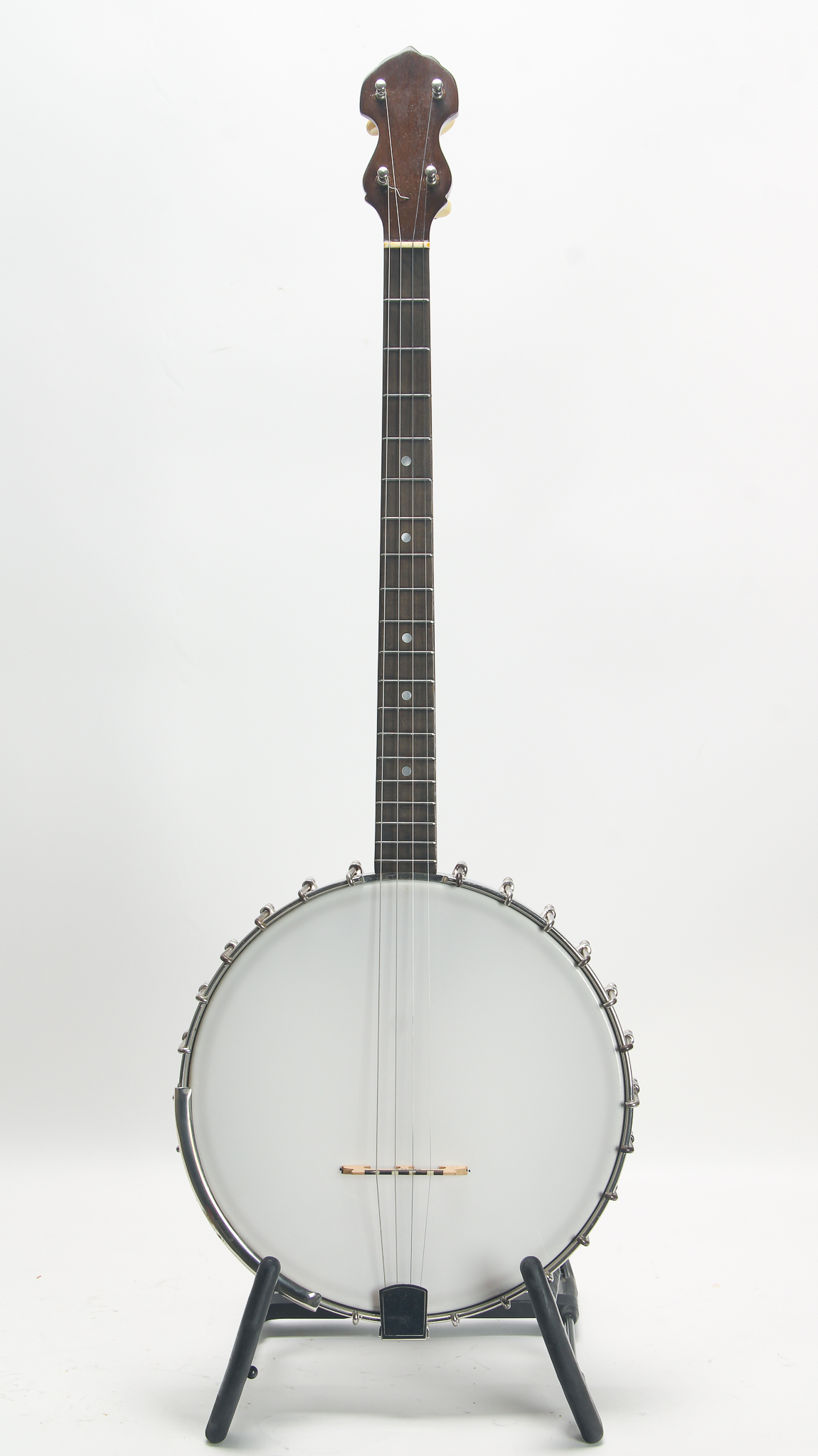 This great tenor banjo is was one of the cheaper instruments offered by Vega in the 1920s. Unlike their Vegaphone banjos, this banjo has a basic tone ring similar to the Little Wonder with a skirt and hoop. Has the original armrest. The head measures in at 10 15/16".